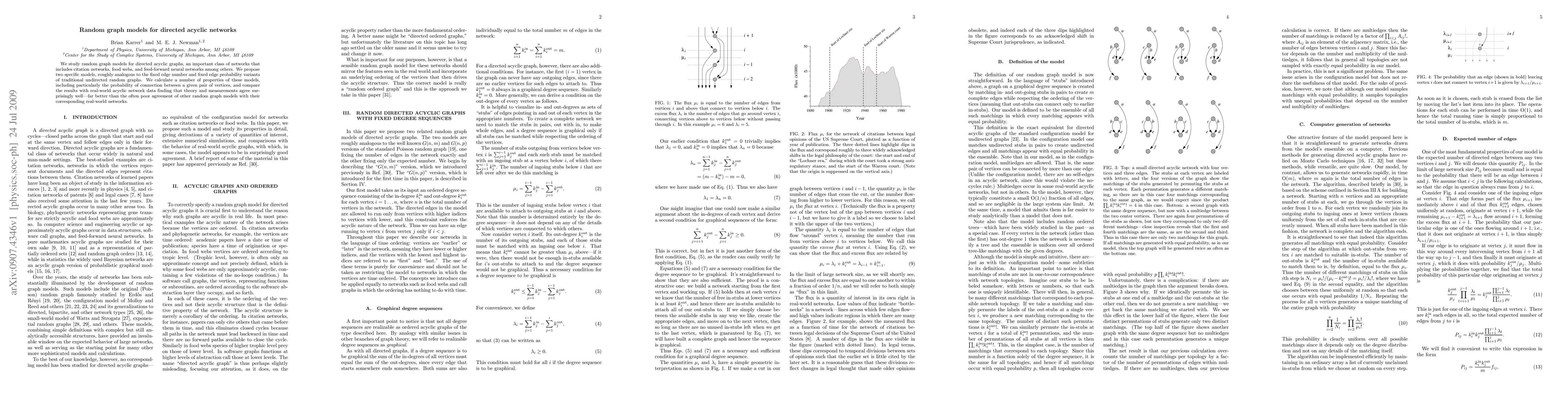 This paper proposes two random graph models for directed acyclic networks, analogous to traditional undirected models, and finds that these models accurately predict properties like connection probabilities, outperforming other random graph models in agreement with real-world data.