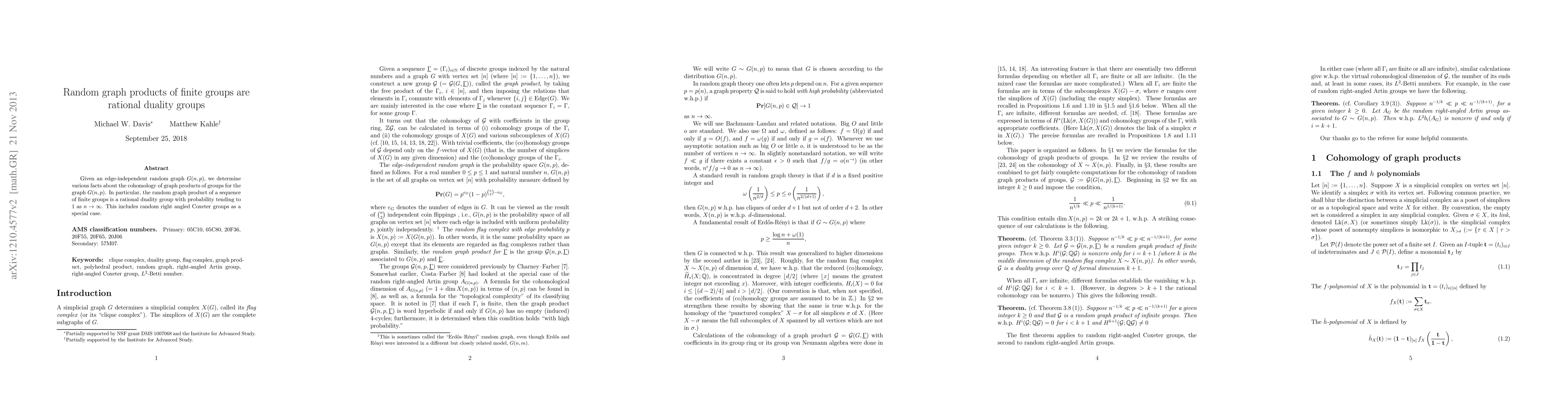 This paper explores the cohomology of graph products of finite groups derived from the random graph G(n,p), demonstrating that these products tend to be rational duality groups with high probability as the graph size increases. This result applies to random right angled Coxeter groups as a specific instance.