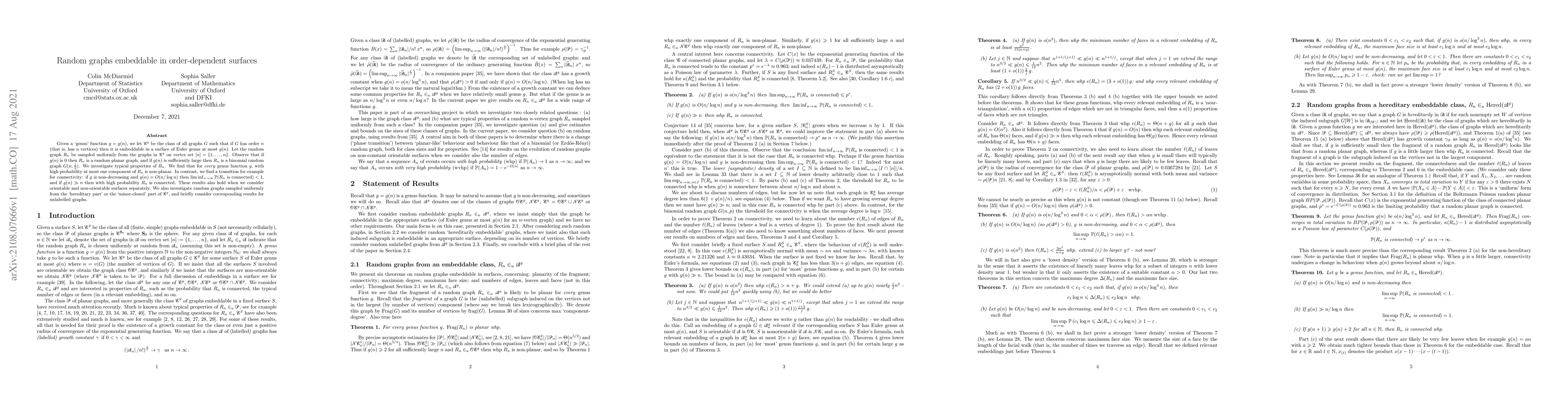 Given a `genus' function $g=g(n)$, we let $\mathcal{E}^g$ be the class of all graphs $G$ such that if $G$ has order $n$ (that is, has $n$ vertices) then it is embeddable in a surface of Euler genus at most $g(n)$. Let the random graph $R_n$ be sampled uniformly from the graphs in $\mathcal{E}^g$ on vertex set $[n]=\{1,\ldots,n\}$. Observe that if $g(n)$ is 0 then $R_n$ is a random planar graph, and if $g(n)$ is sufficiently large then $R_n$ is a binomial random graph $G(n,\tfrac12)$. We investigate typical properties of $R_n$. We find that for \emph{every} genus function $g$, with high probability at most one component of $R_n$ is non-planar. In contrast, we find a transition for example for connectivity: if $g$ is non-decreasing and $g(n) = O(n/\log n)$ then $\liminf_{n \to \infty} \mathbb{P}(R_n \mbox{ is connected}) < 1$, and if $g(n) \gg n$ then with high probability $R_n$ is connected. These results also hold when we consider orientable and non-orientable surfaces separately. We also investigate random graphs sampled uniformly from the `hereditary part' or the `minor-closed' part of $\mathcal{E}^g$, and briefly consider corresponding results for unlabelled graphs.