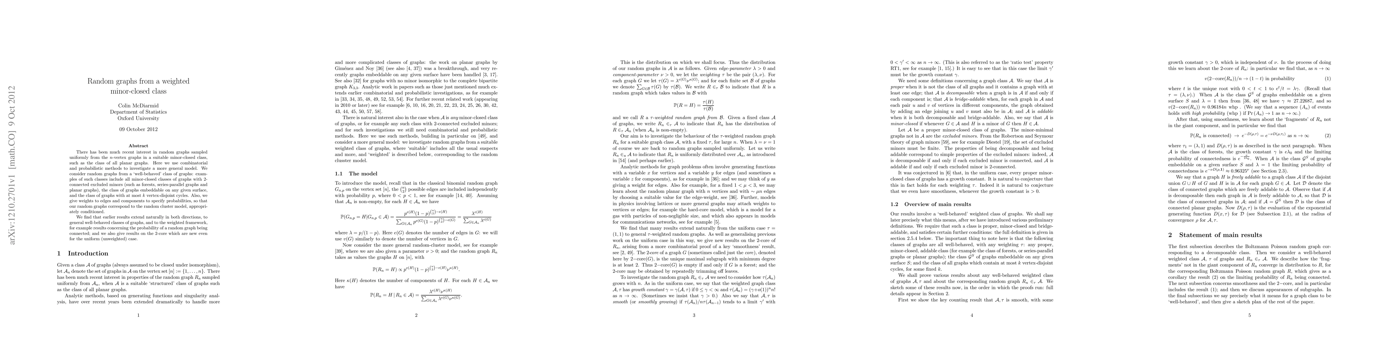This paper explores random graphs sampled from weighted minor-closed classes, extending previous results to general well-behaved graph classes. It also introduces a weighted framework, providing new insights into the probability of connectivity and the 2-core structure.