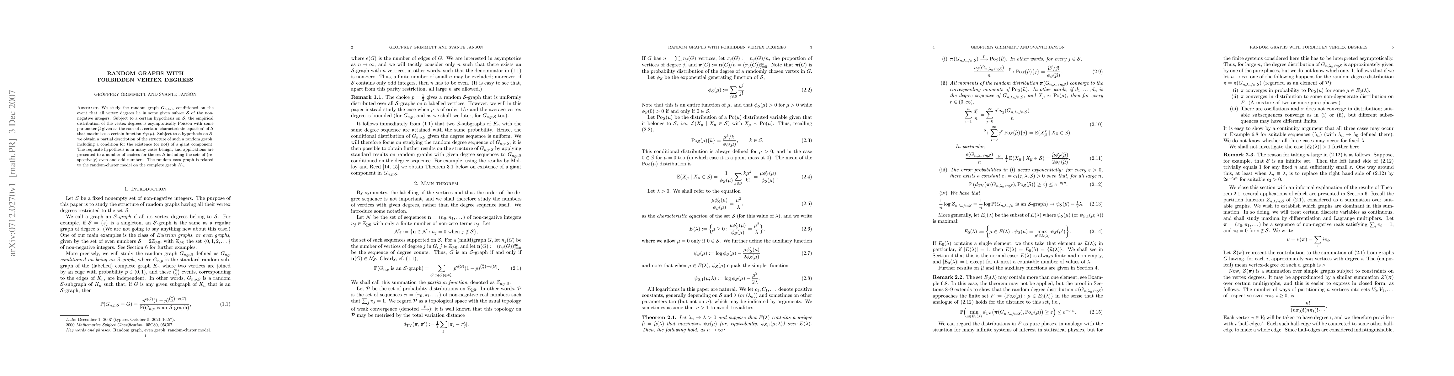 This paper investigates random graphs conditioned on vertex degrees lying within a specified subset, showing that under certain conditions, the degree distribution converges to a Poisson distribution. It also explores the structural properties, including the presence of a giant component, and applies these findings to specific degree sets, such as even and odd numbers.