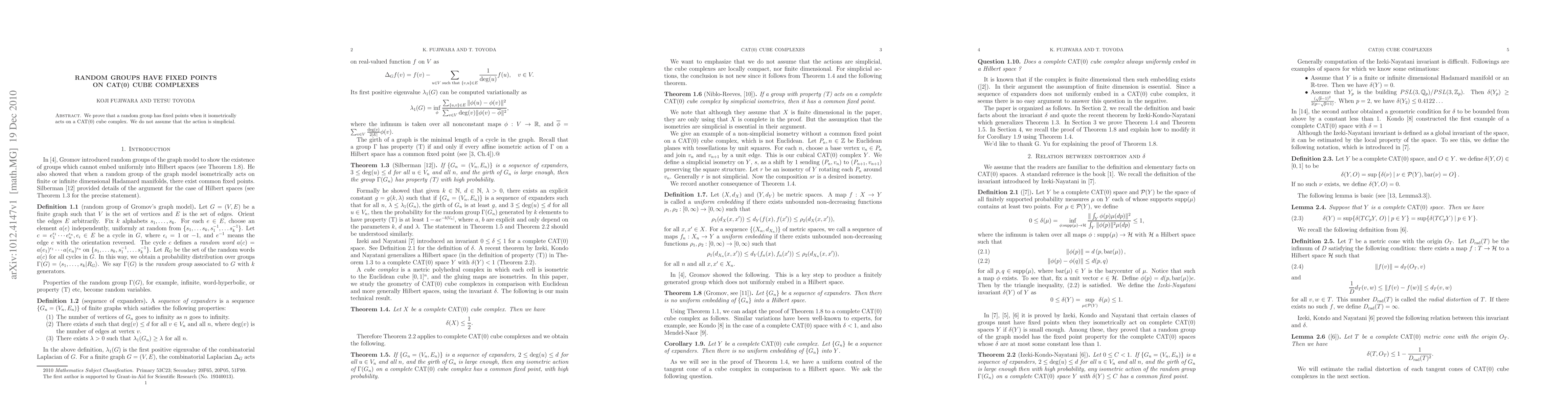 We prove that a random group has fixed points when it isometrically acts on a CAT(0) cube complex. We do not assume that the action is simplicial.