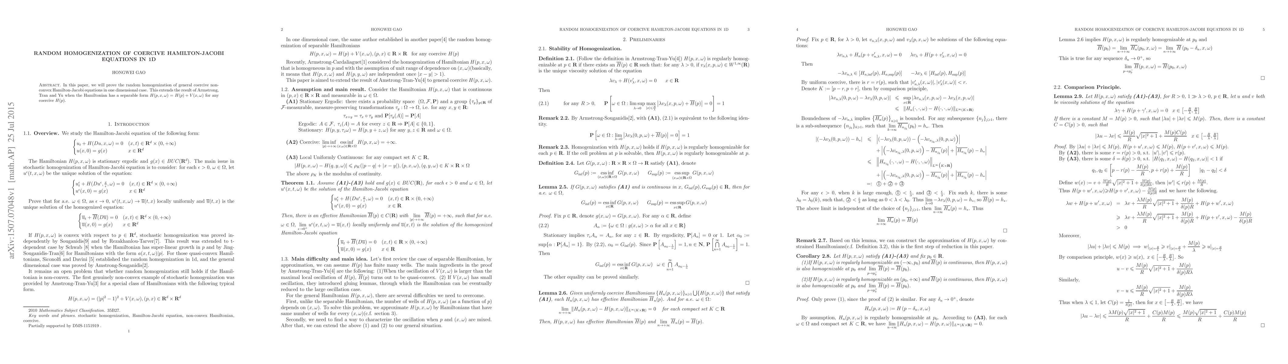 Summary: This paper proves the random homogenization of general coercive non-convex Hamilton-Jacobi equations in one dimension, extending previous results for separable Hamiltonians to a broader class of coercive functions.