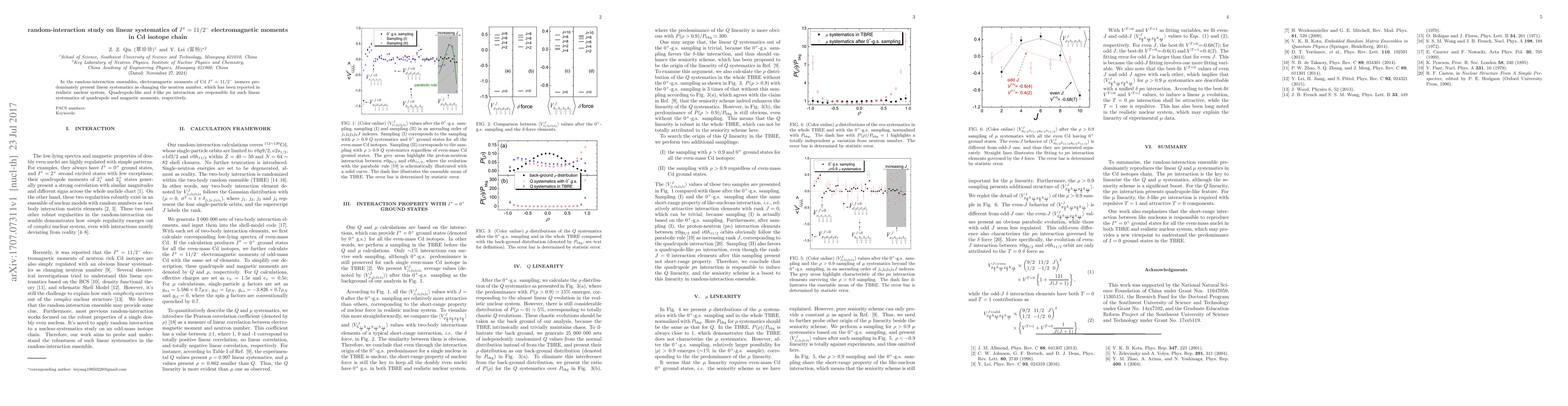 In the random-interaction ensembles, electromagnetic moments of Cd $I^{\pi}=11/2^-$ isomers predominately present linear systematics as changing the neutron number, which has been reported in realistic nuclear system. Quadrupole-like and $\delta$-like $pn$ interaction are responsible for such linear systematics of quadrupole and magnetic moments, respectively.