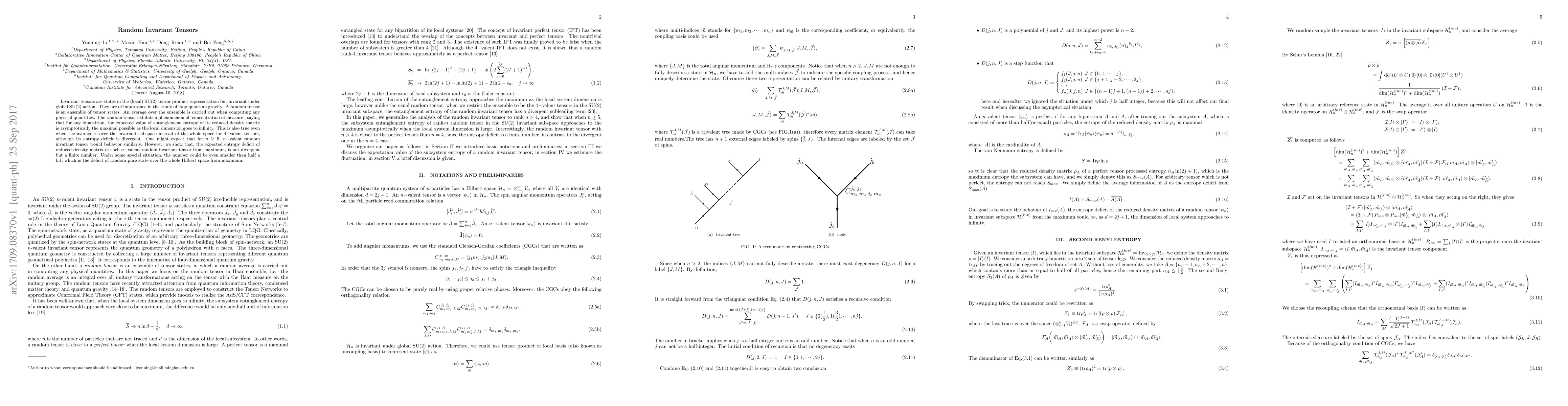 Researchers studied random invariant tensors in loop quantum gravity, finding that certain properties of these tensors approach maximum possible values even with infinite local dimension; unexpectedly, the entropy deficit is finite for n-valent tensors.