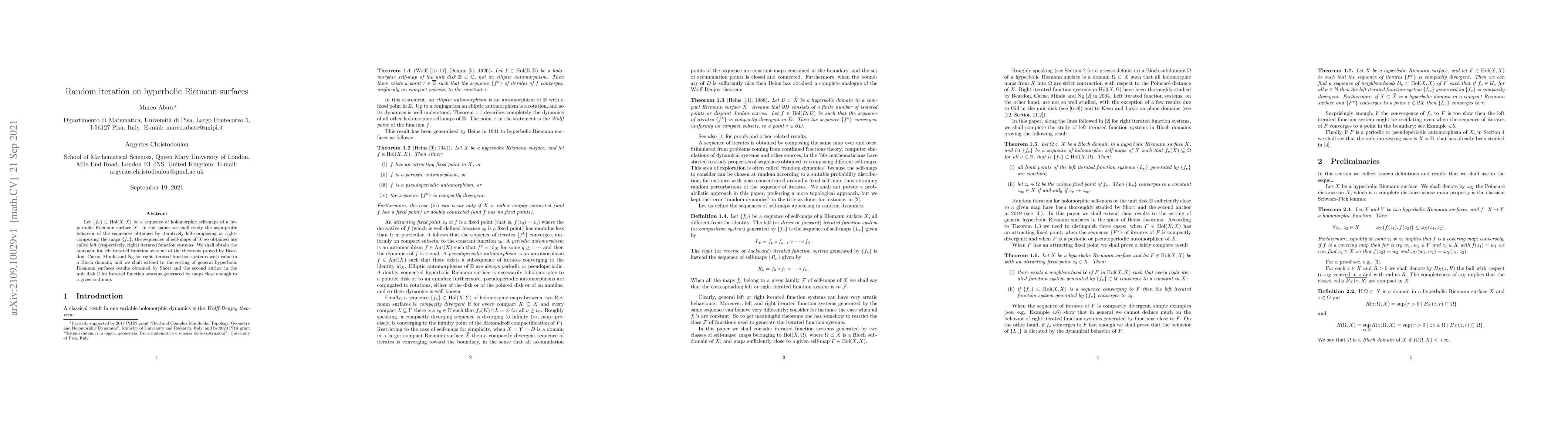 Let $\{f_\nu\}$ be a sequence of holomorphic self-maps of a hyperbolic Riemann surface $X$. In this paper we shall study the asymptotic behavior of the sequences obtained by iteratively left-composing or right-composing the maps $\{f_\nu\}$; the sequences of self-maps of $X$ so obtained are called left (respectively, right) iterated function systems. We shall prove the analogue for left iterated function systems of the theorems proved by Beardon, Carne, Minda and Ng for right iterated function systems with value in a Bloch domain; and we shall extend to the setting of general hyperbolic Riemann surfaces results obtained by Short and the second author in the unit disk for iterated function systems generated by maps close enough to a given self-map.