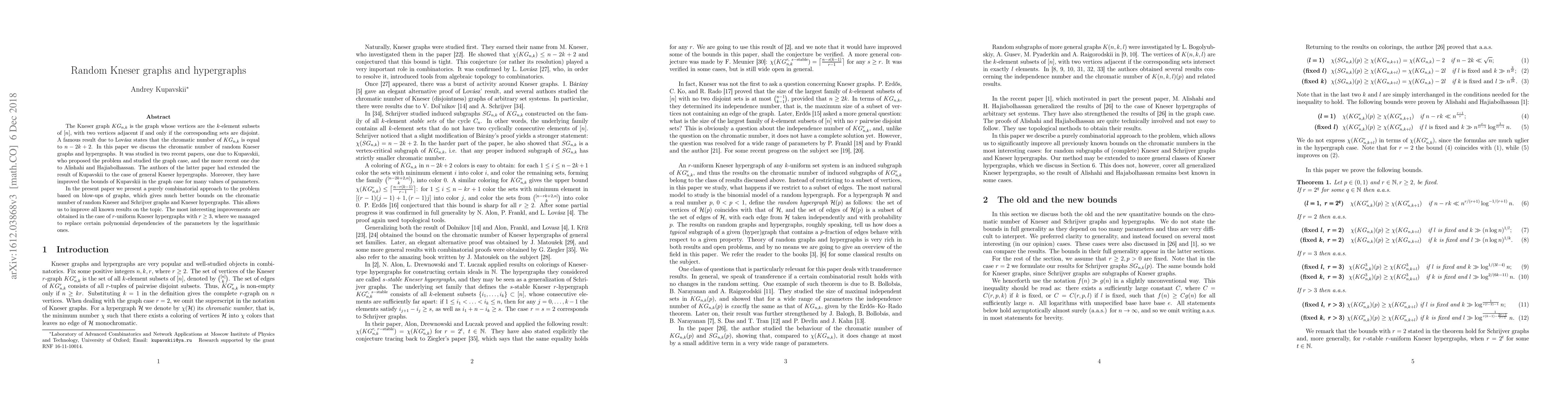 This paper introduces a combinatorial method based on graph blow-ups to determine the chromatic number of random Kneser graphs and hypergraphs, surpassing previous results by improving bounds, especially for $r$-uniform hypergraphs with $r \geq 3$, and replacing polynomial dependencies with logarithmic ones.