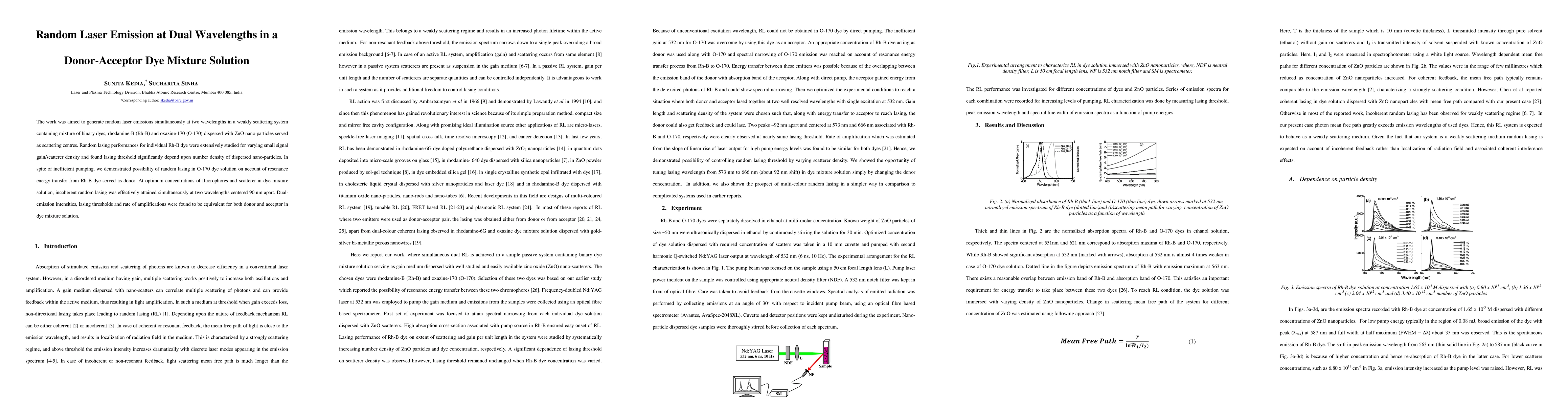 Researchers created a mixture of dyes that simultaneously emit random laser light at two wavelengths when dispersed with zinc oxide nanoparticles, demonstrating dual-emission lasing in a weakly scattering system.