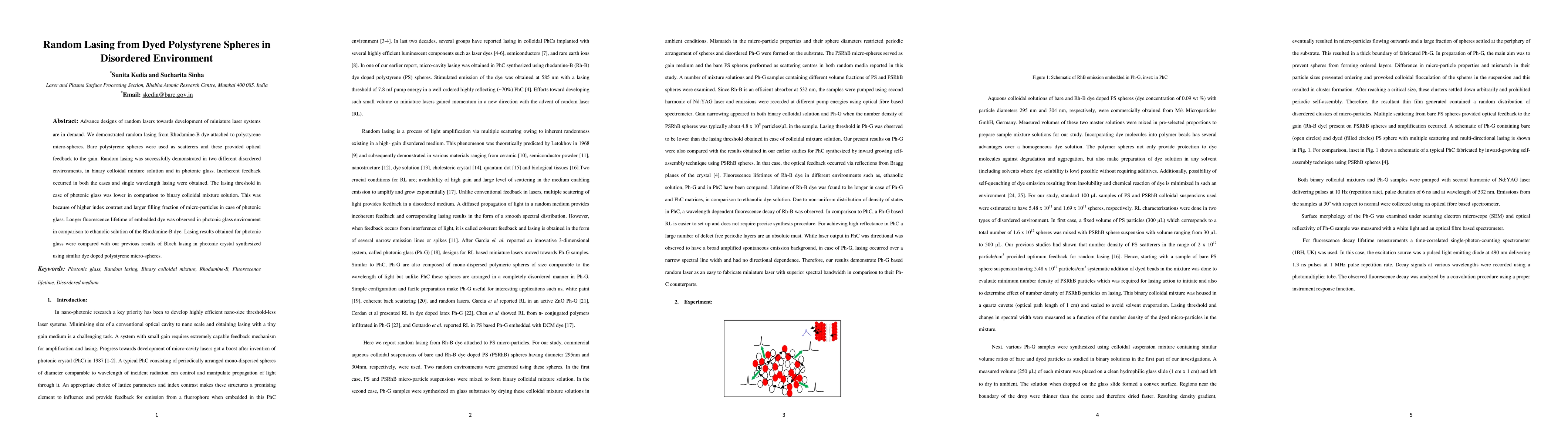 Random lasing was obtained in binary colloidal solution and in Ph-G containing a mixture of bare and dyed PS micro-particles