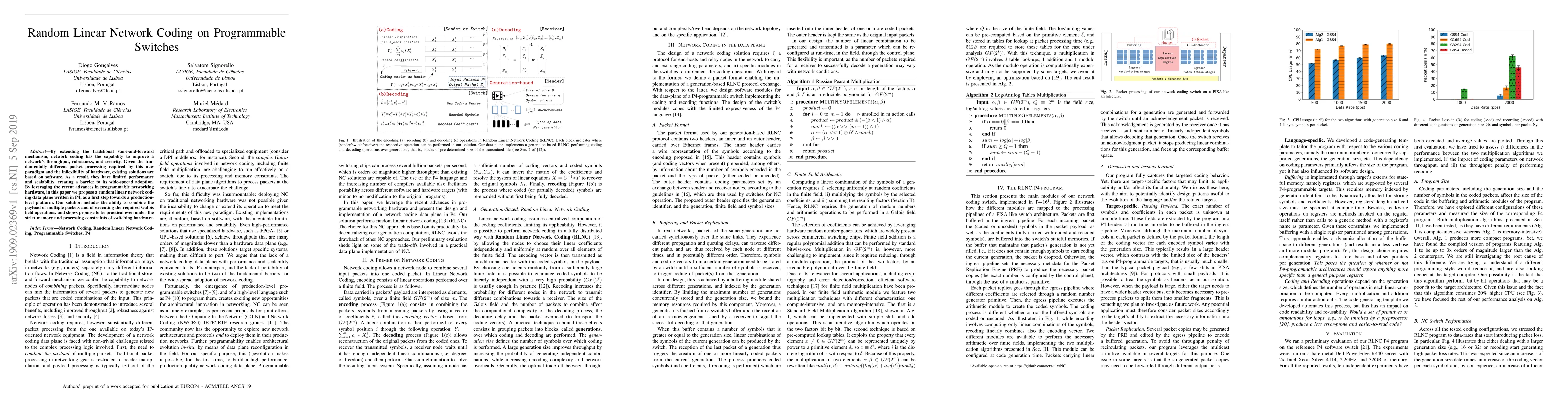 This paper proposes a random linear network coding data plane implemented in P4 for programmable switches to enhance network throughput, robustness, and security. It aims to overcome the limitations of existing software-based solutions by leveraging advanced programmable networking hardware, offering a scalable and efficient approach for practical deployment.