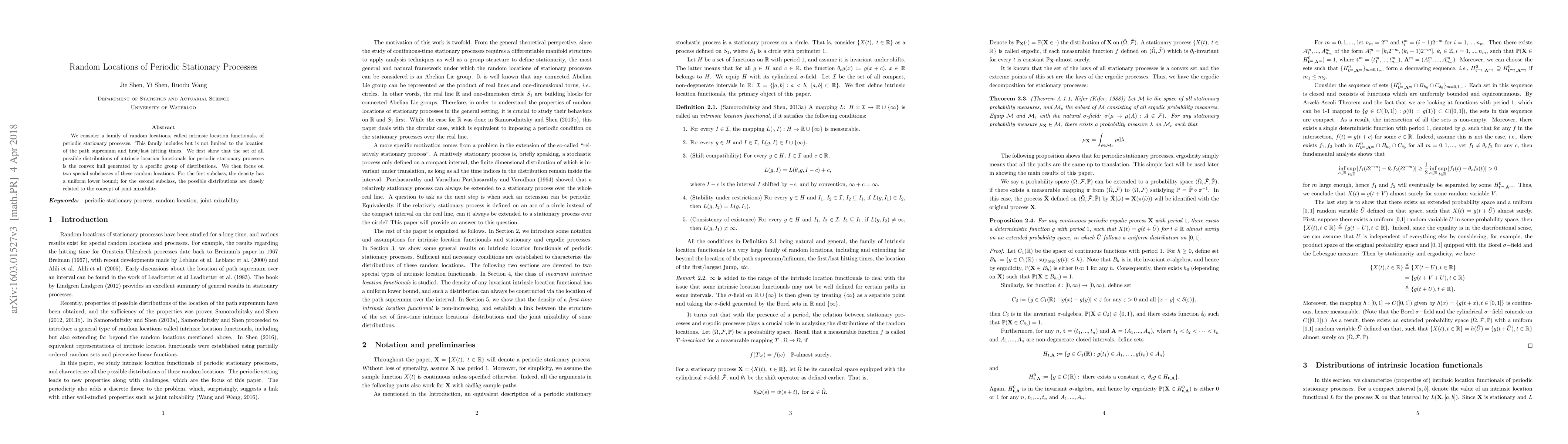 We consider a family of random locations, called intrinsic location functionals, of periodic stationary processes. This family includes but is not limited to the location of the path supremum and first/last hitting times. We first show that the set of all possible distributions of intrinsic location functionals for periodic stationary processes is the convex hull generated by a specific group of distributions. We then focus on two special subclasses of these random locations. For the first subclass, the density has a uniform lower bound; for the second subclass, the possible distributions are closely related to the concept of joint mixability.