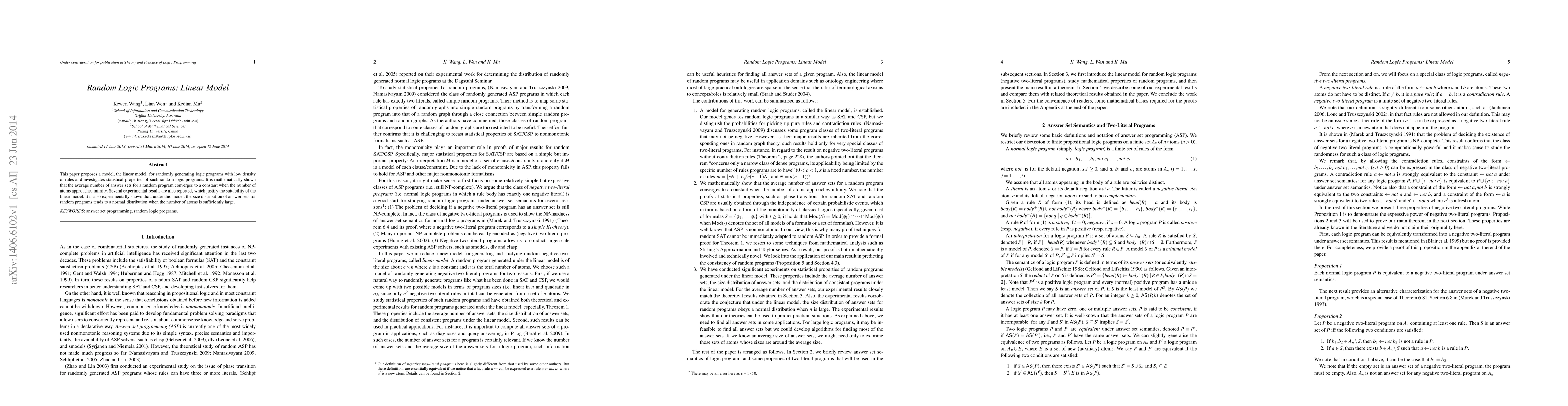 A new model for generating random logic programs is proposed, which shows that as the number of atoms approaches infinity, the average number of answer sets converges to a constant. The size distribution of answer sets tends to a normal distribution when the number of atoms is sufficiently large.