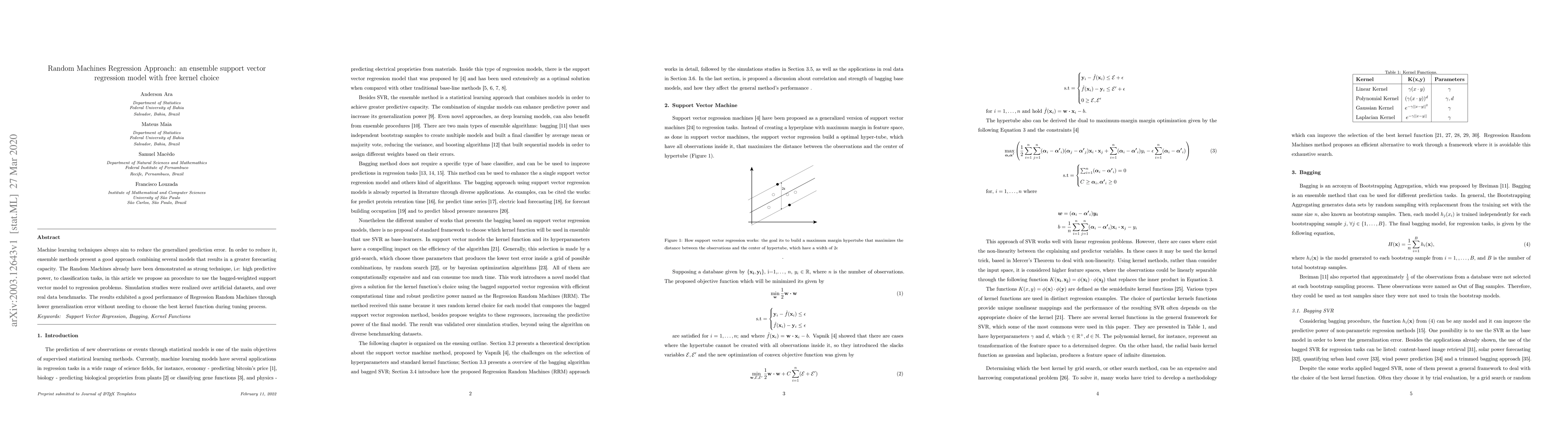 This paper proposes an ensemble support vector regression model using Random Machines, which combines bagged-weighted support vector models for regression tasks. Simulation studies show that this method effectively reduces generalization error without requiring the selection of the optimal kernel function.