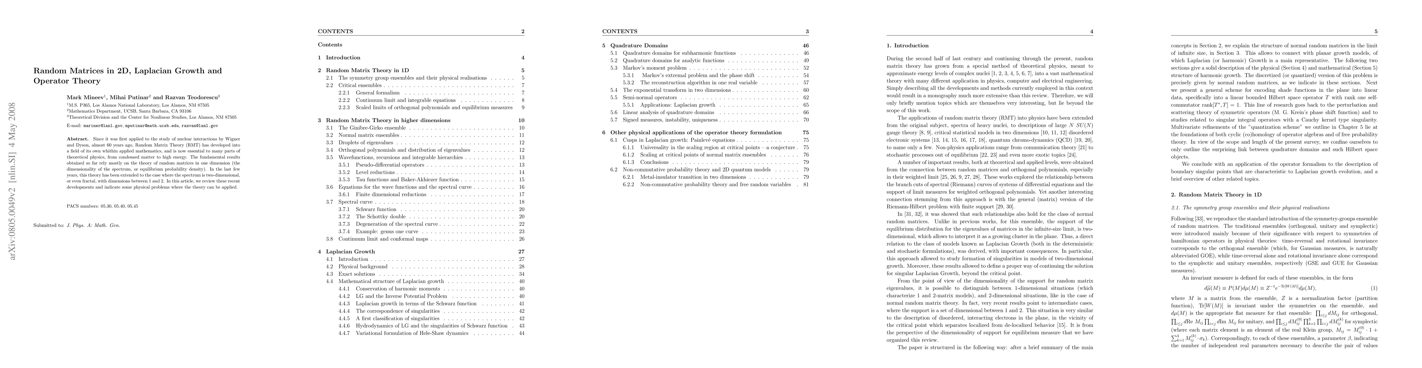 This paper reviews recent developments in Random Matrix Theory, expanding its application to 2D spectra and fractal dimensions, with implications for theoretical physics and physical problems.