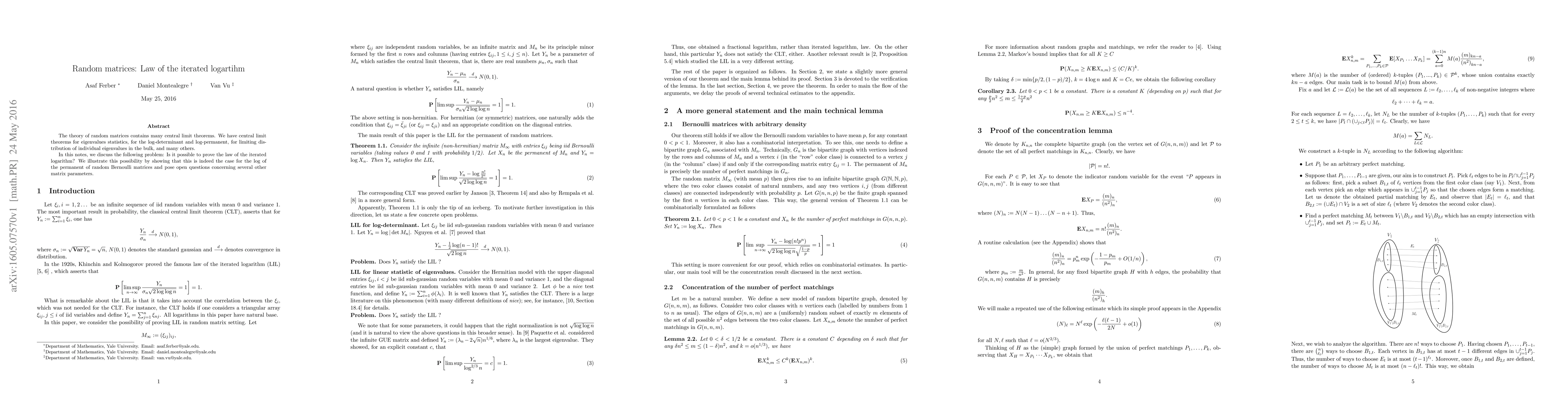 Researchers proved the law of the iterated logarithm for the log of the permanent of random Bernoulli matrices, a breakthrough in matrix theory with implications for central limit theorems.