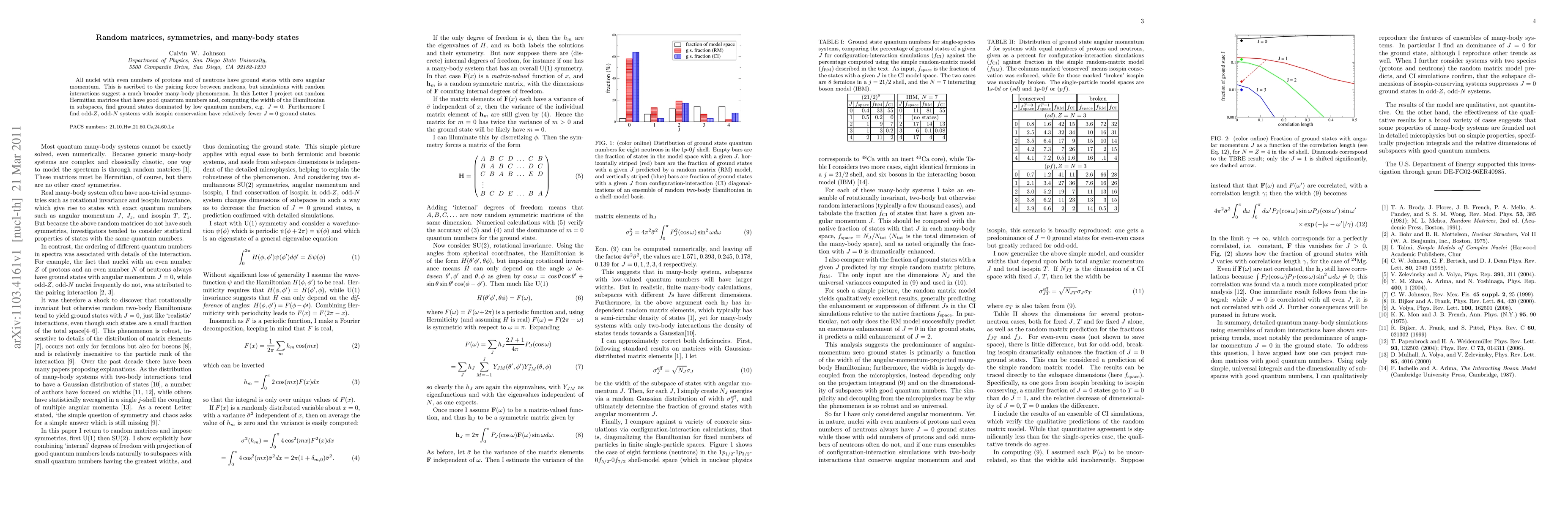 Random matrix simulations suggest that even-numbered nuclei have ground states with zero angular momentum due to a broad many-body phenomenon, not just the pairing force. Odd-Z systems show relatively fewer J=0 ground states when isospin conservation is applied.