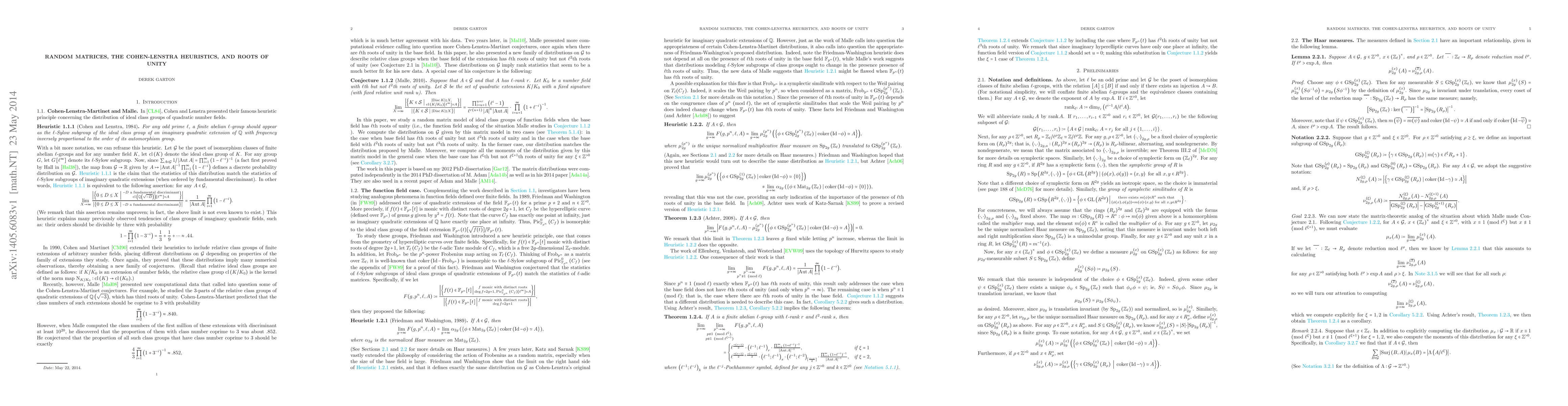 The paper introduces a novel random matrix-based heuristic for predicting the frequency of ideal class groups in number field extensions, extending the Cohen-Lenstra heuristics to account for unexpected roots of unity.