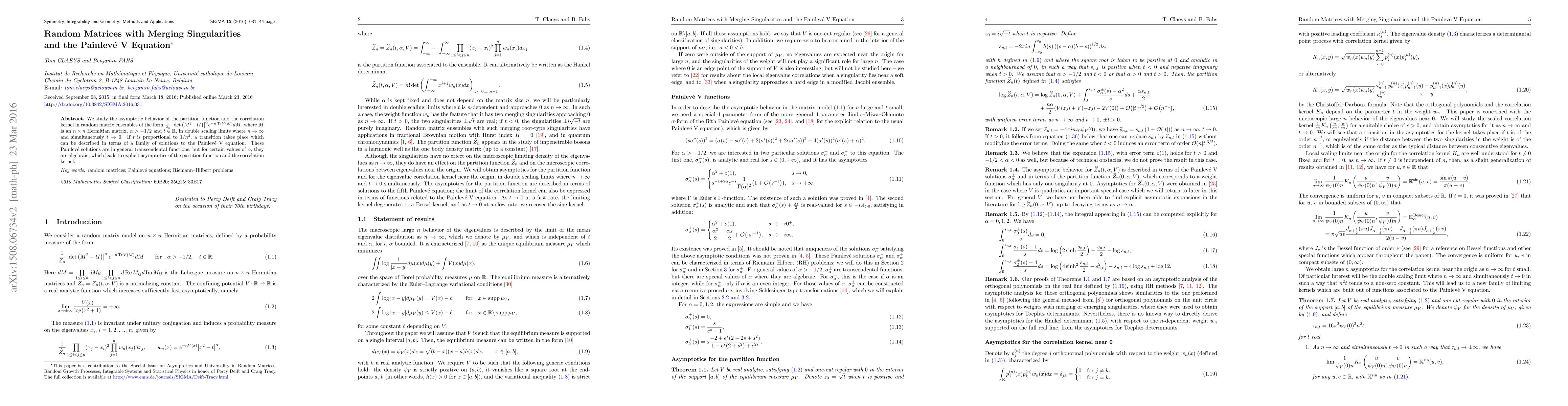 We study the asymptotic behavior of the partition function and the correlation kernel in random matrix ensembles of the form $\frac{1}{Z_n} \big|\det \big( M^2-tI \big)\big|^{\alpha} e^{-n\operatorname{Tr} V(M)}dM$, where $M$ is an $n\times n$ Hermitian matrix, $\alpha>-1/2$ and $t\in\mathbb R$, in double scaling limits where $n\to\infty$ and simultaneously $t\to 0$. If $t$ is proportional to $1/n^2$, a transition takes place which can be described in terms of a family of solutions to the Painlev\'e V equation. These Painlev\'e solutions are in general transcendental functions, but for certain values of $\alpha$, they are algebraic, which leads to explicit asymptotics of the partition function and the correlation kernel.