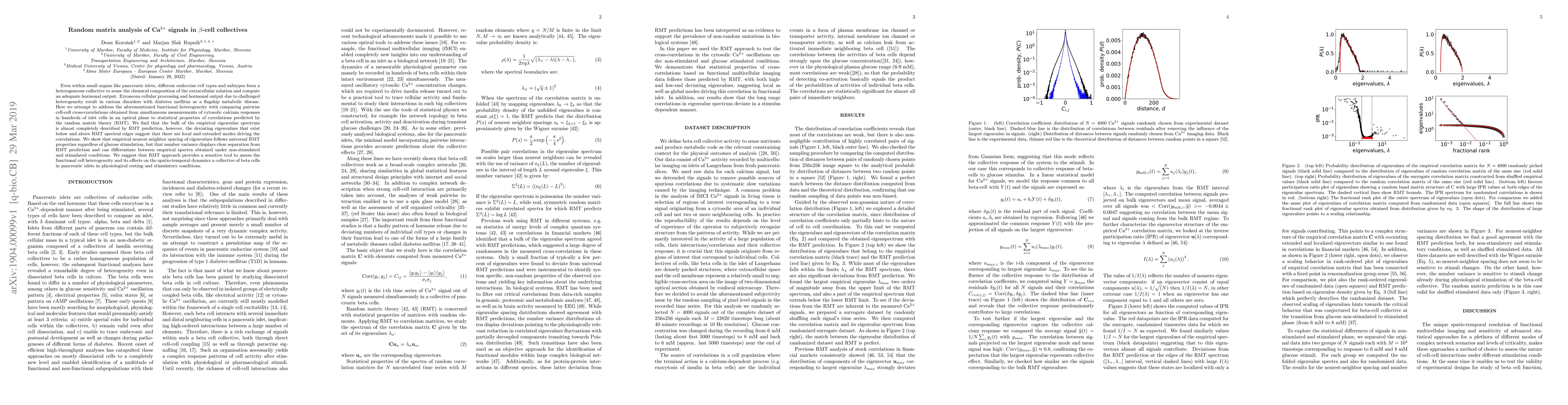 Research paper uses random matrix theory to analyze Ca2+ signals in beta-cell collectives, finding that most eigenvalues follow predicted patterns but deviating values indicate local modes driving correlations.