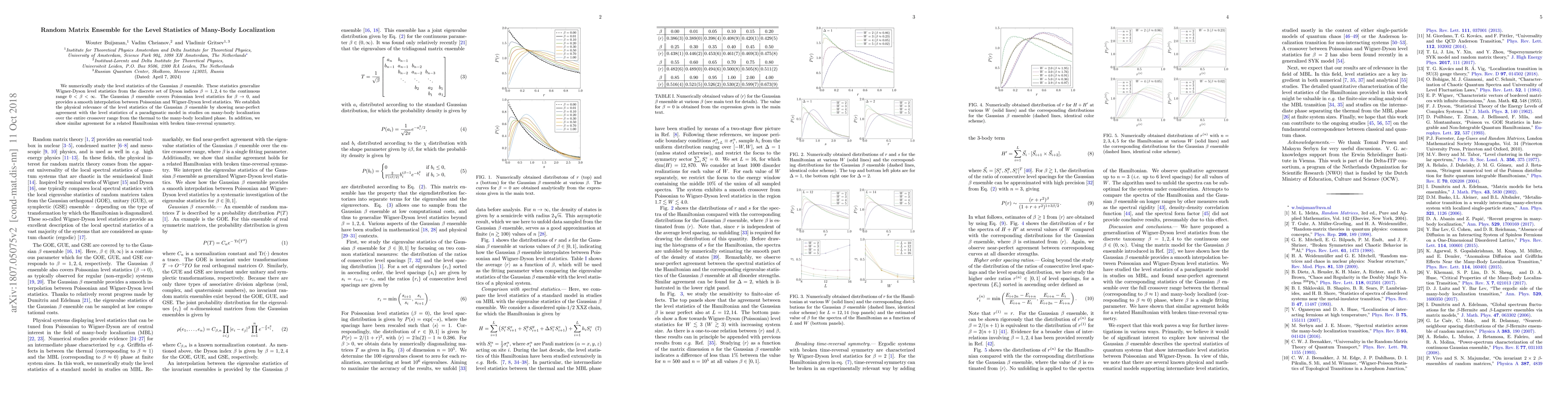 This paper numerically investigates the level statistics of the Gaussian $\beta$ ensemble, providing a smooth interpolation between Poissonian and Wigner-Dyson statistics. The study finds near-perfect agreement between this ensemble's level statistics and those in many-body localization models, indicating its physical relevance.