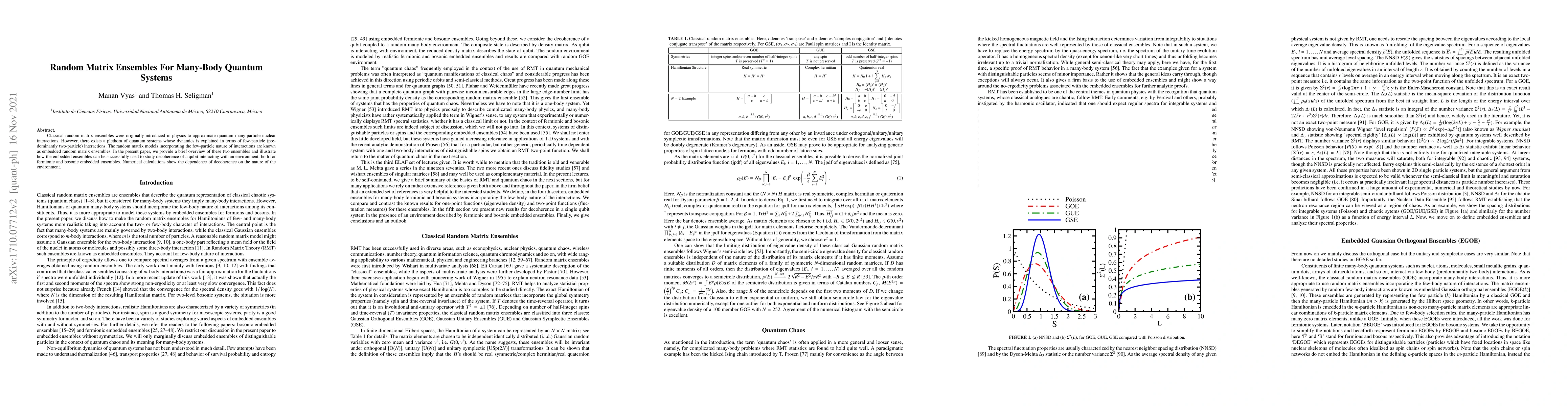 This paper reviews classical and embedded random matrix ensembles, focusing on their application to few-particle quantum systems. It demonstrates how embedded ensembles can effectively model qubit decoherence in fermionic and bosonic environments, highlighting the influence of environmental interactions on decoherence.