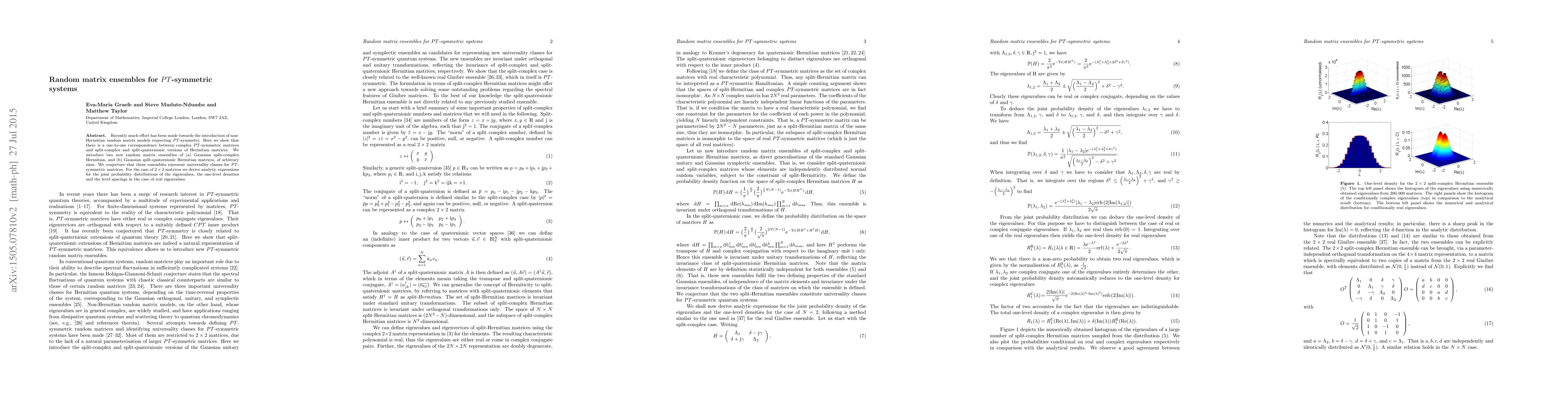 The introduction of the split-complex Hermitian Gaussian random matrices provides a novel approach to studying PT-symmetric systems, offering new insights into their statistical properties.