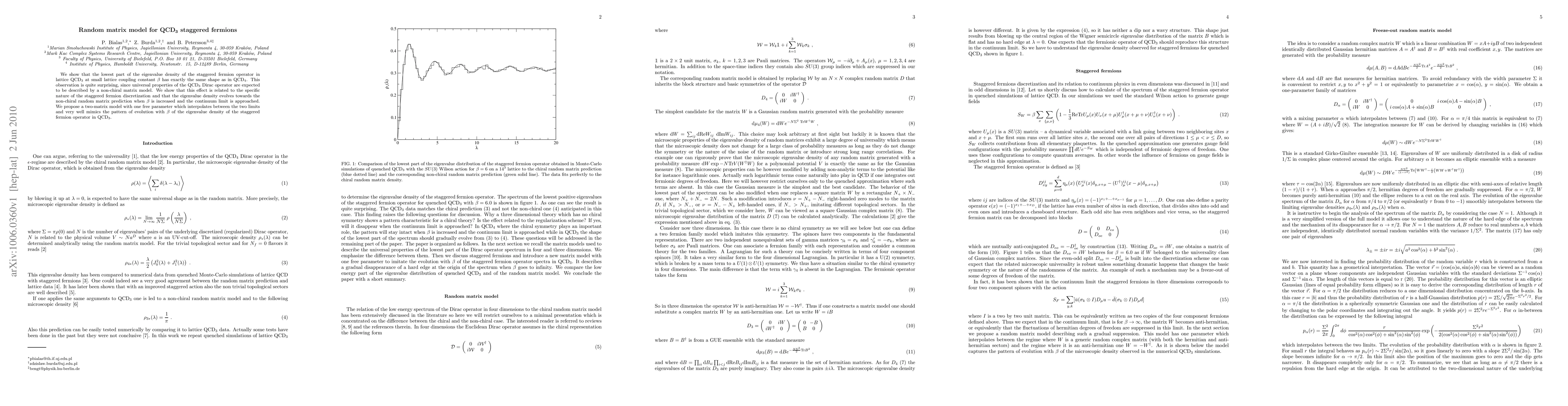 This paper demonstrates that the eigenvalue density of staggered fermions in lattice QCD_3 at small lattice coupling resembles that of QCD_4, contrary to the expected non-chiral matrix model behavior. The authors propose a two-matrix model to interpolate between chiral and non-chiral predictions, accurately capturing the eigenvalue density evolution with increasing lattice coupling.