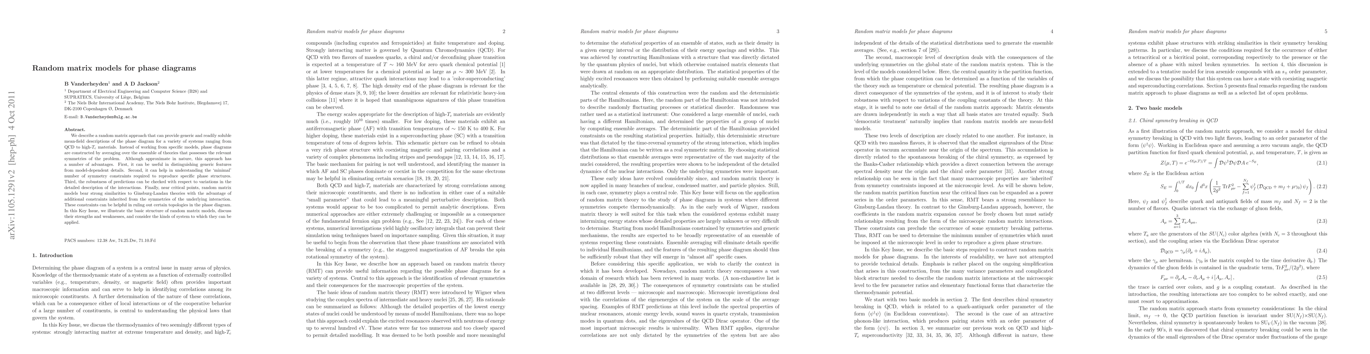 A new approach to studying phase diagrams uses random matrix models to identify generic features and understand minimal symmetry constraints required for specific phase structures.