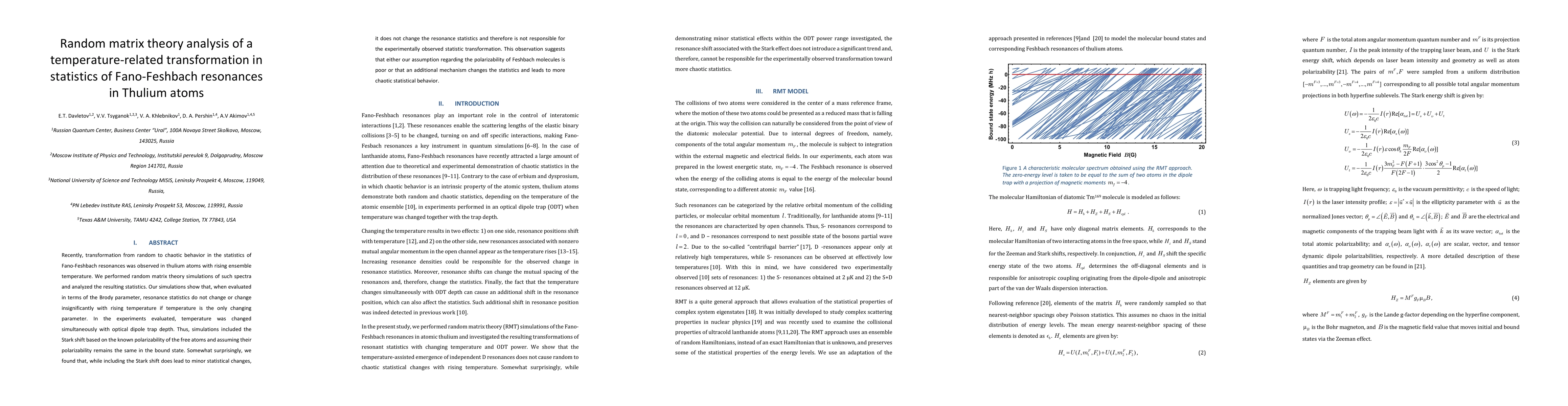 This paper uses random matrix theory to analyze the statistical transformation of Fano-Feshbach resonances in thulium atoms as temperature increases, finding no significant change in resonance statistics when temperature is the only variable. The study suggests that the observed experimental transformation may be due to an additional mechanism rather than changes in polarizability.