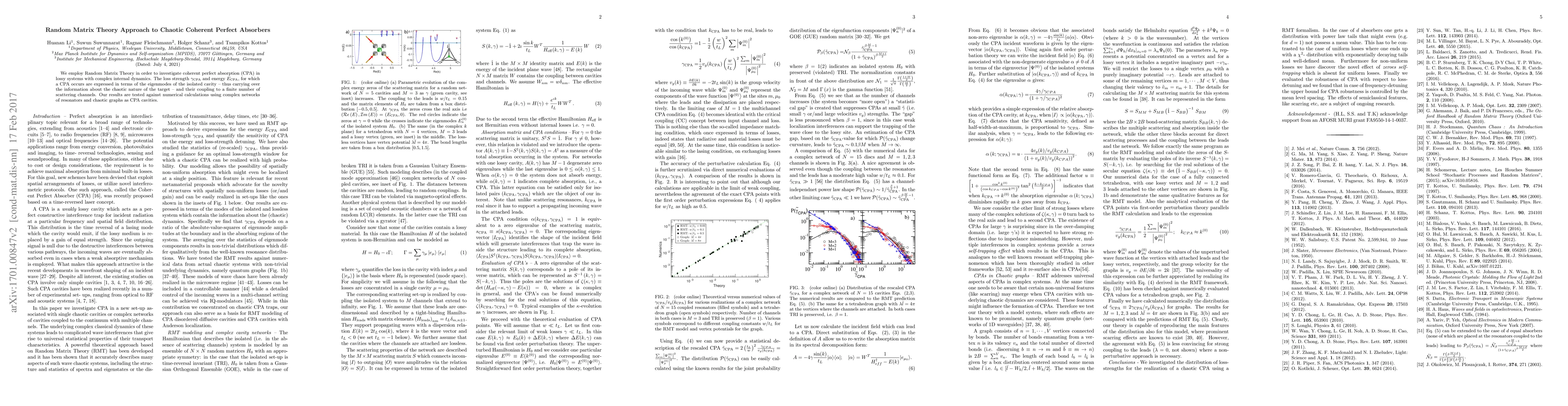 Researchers used Random Matrix Theory to study perfect absorption in complex systems with chaotic dynamics, finding a way to express absorption strengths in terms of eigenmodes and scattering channels. Their results were validated through numerical simulations using complex networks of resonators.