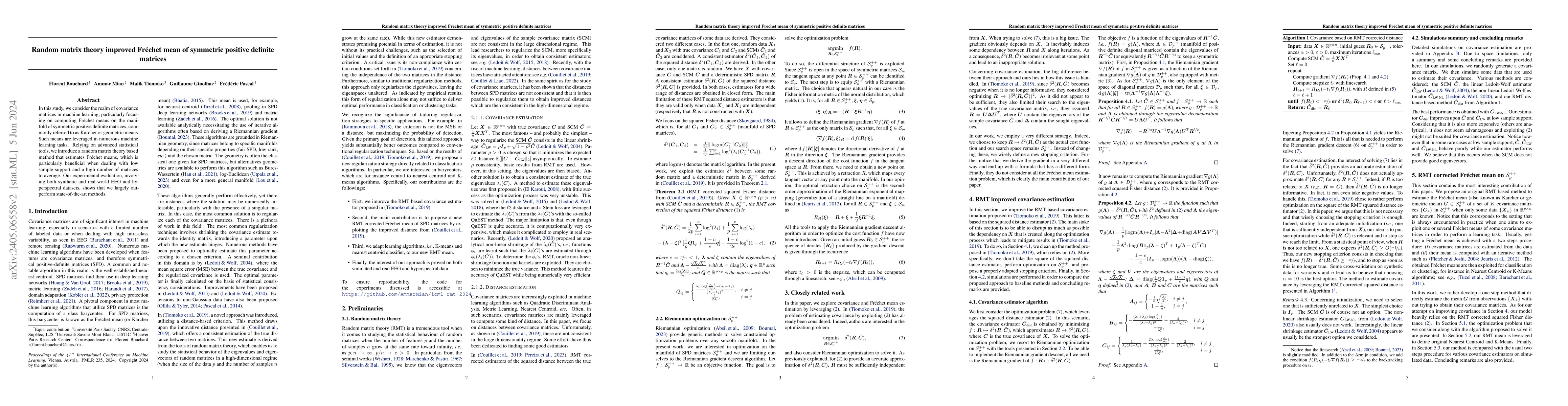 This study introduces a random matrix theory-based method for computing Fr\'echet means on symmetric positive definite matrices, significantly improving performance in scenarios with low sample sizes and high matrix counts. Experimental results on EEG and hyperspectral datasets show superior performance compared to existing techniques.
