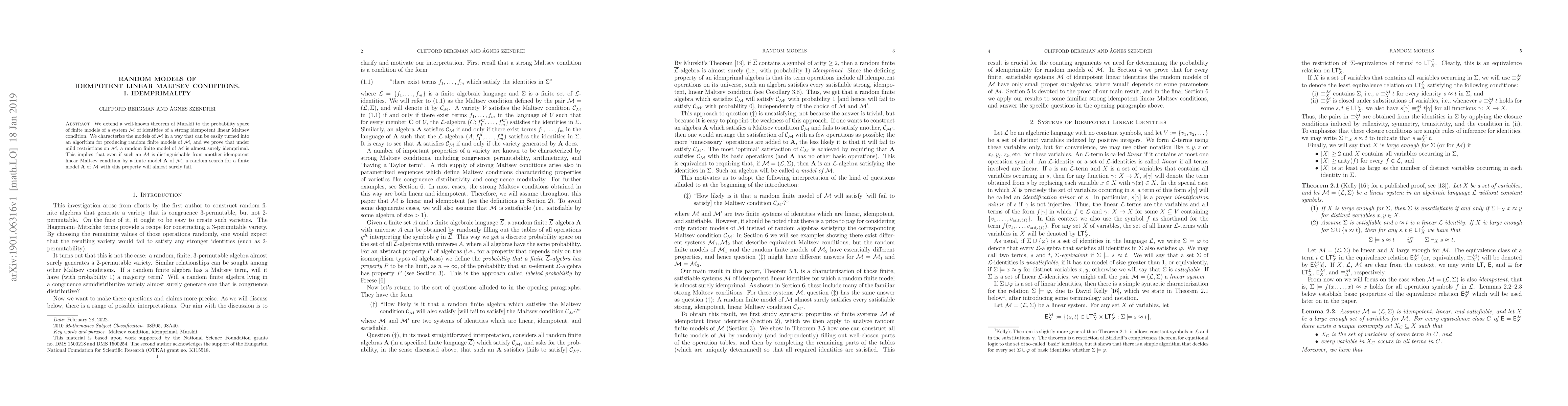 We extend a well-known theorem of Murski\v{\i} to the probability space of finite models of a system $\mathcal{M}$ of identities of a strong idempotent linear Maltsev condition. We characterize the models of $\mathcal{M}$ in a way that can be easily turned into an algorithm for producing random finite models of $\mathcal{M}$, and we prove that under mild restrictions on $\mathcal{M}$, a random finite model of $\mathcal{M}$ is almost surely idemprimal. This implies that even if such an $\mathcal{M}$ is distinguishable from another idempotent linear Maltsev condition by a finite model $\mathbf{A}$ of $\mathcal{M}$, a random search for a finite model $\mathbf{A}$ of $\mathcal{M}$ with this property will almost surely fail.