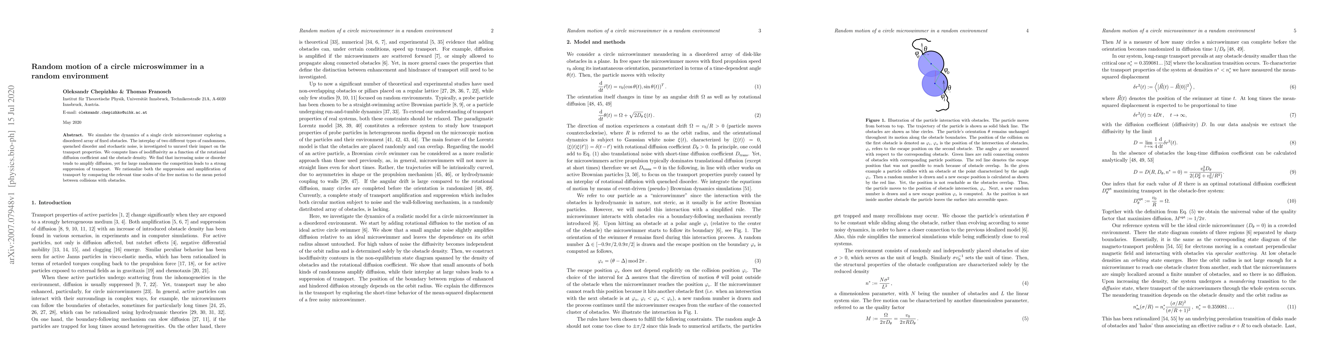 Researchers studied how noise and obstacles affect a microswimmer's movement in a random environment, finding that increased noise can enhance diffusion but too much randomness can actually hinder transport.