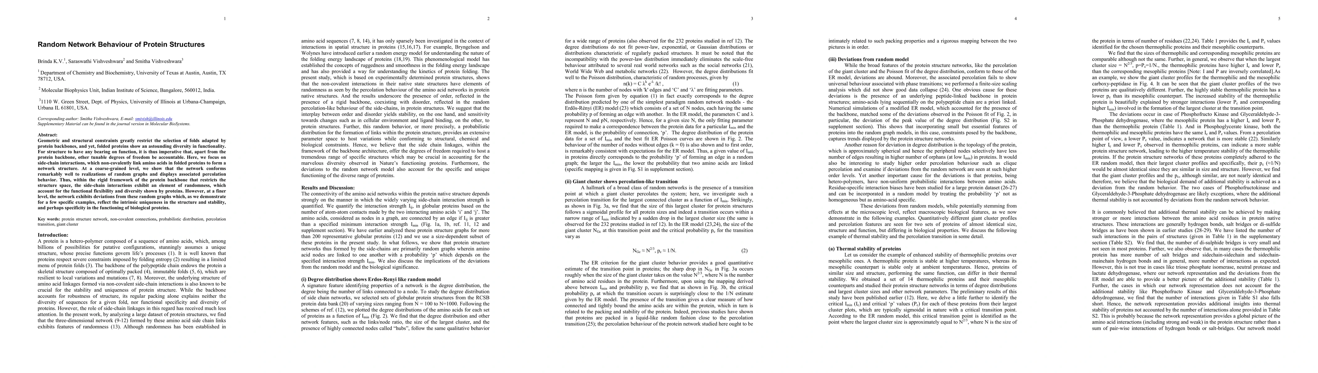 This study reveals that while protein side-chain interactions form a network resembling random graphs at a coarse-grained level, this randomness contributes to functional flexibility. However, specific structures exhibit deviations from randomness, indicating unique stability and specificity critical to protein function.