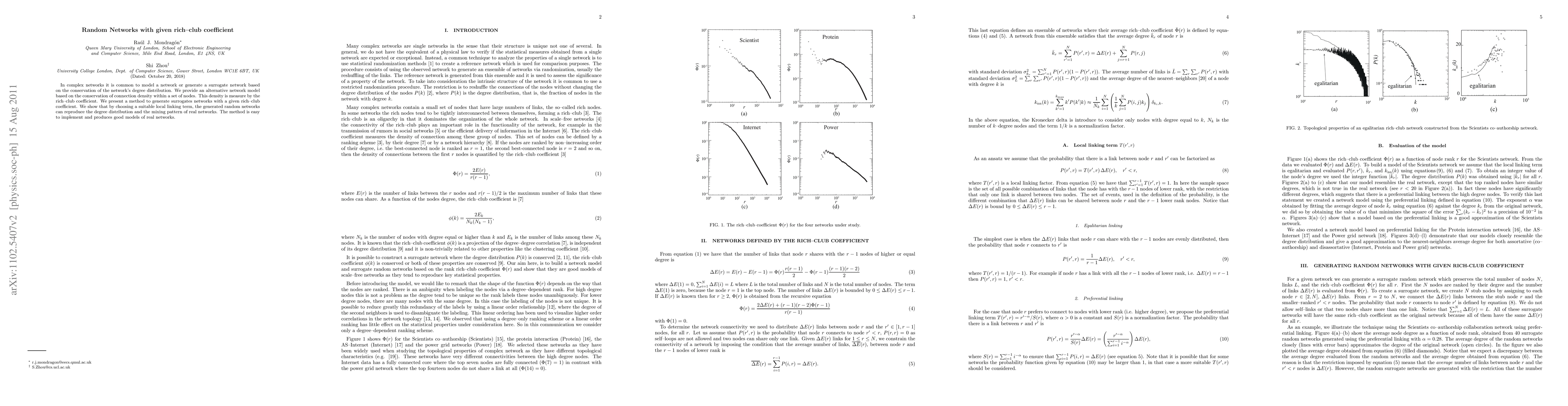 Researchers create a method to generate random networks with a given rich-club coefficient, which can reproduce real network degree distributions and mixing patterns.