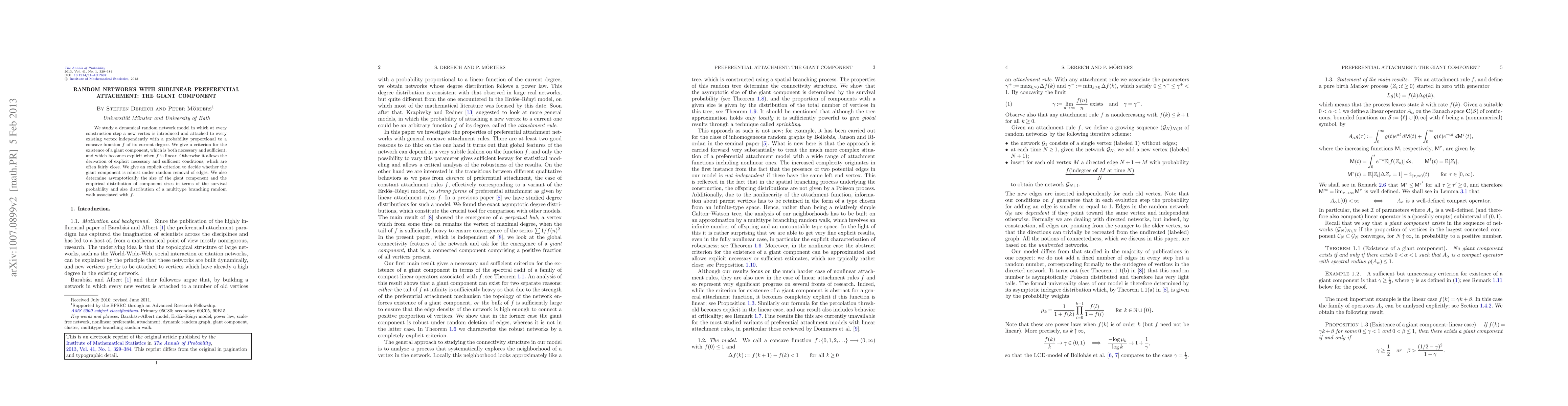 We study a dynamical random network model in which at every construction step a new vertex is introduced and attached to every existing vertex independently with a probability proportional to a concave function f of its current degree. We give a criterion for the existence of a giant component, which is both necessary and sufficient, and which becomes explicit when f is linear. Otherwise it allows the derivation of explicit necessary and sufficient conditions, which are often fairly close. We give an explicit criterion to decide whether the giant component is robust under random removal of edges. We also determine asymptotically the size of the giant component and the empirical distribution of component sizes in terms of the survival probability and size distribution of a multitype branching random walk associated with f.