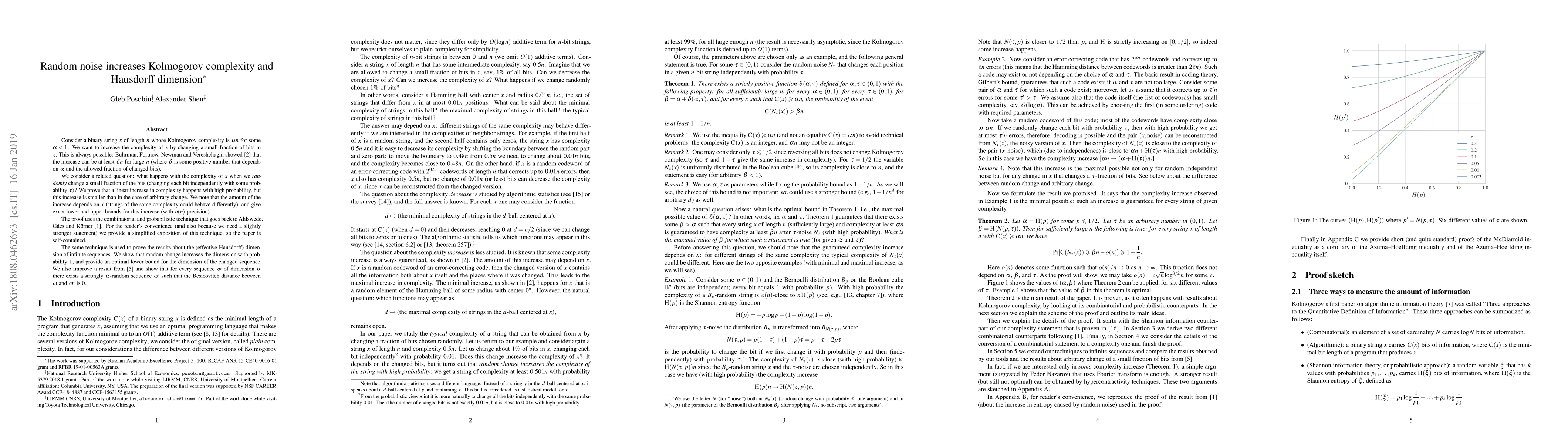 Randomly changing a small fraction of bits in a binary string increases its Kolmogorov complexity with high probability, but the increase is smaller than with arbitrary changes, according to new research findings.
