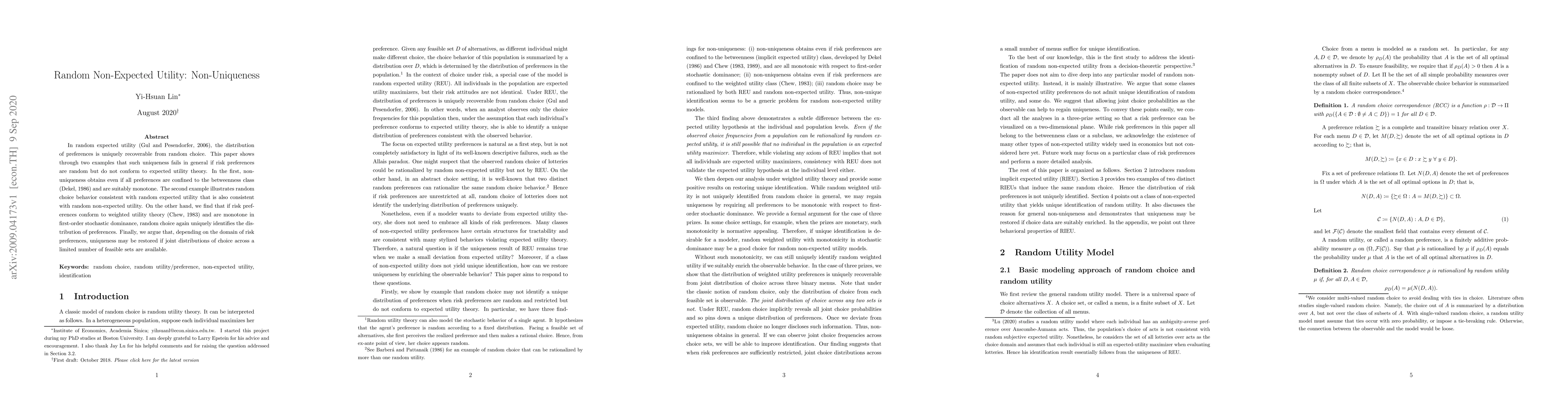 This paper demonstrates that in random expected utility theory, the distribution of preferences is not uniquely recoverable when risk preferences are random and do not follow expected utility principles, using two examples to illustrate this non-uniqueness. It concludes that if preferences adhere to weighted utility theory and are monotone, uniqueness can be restored.