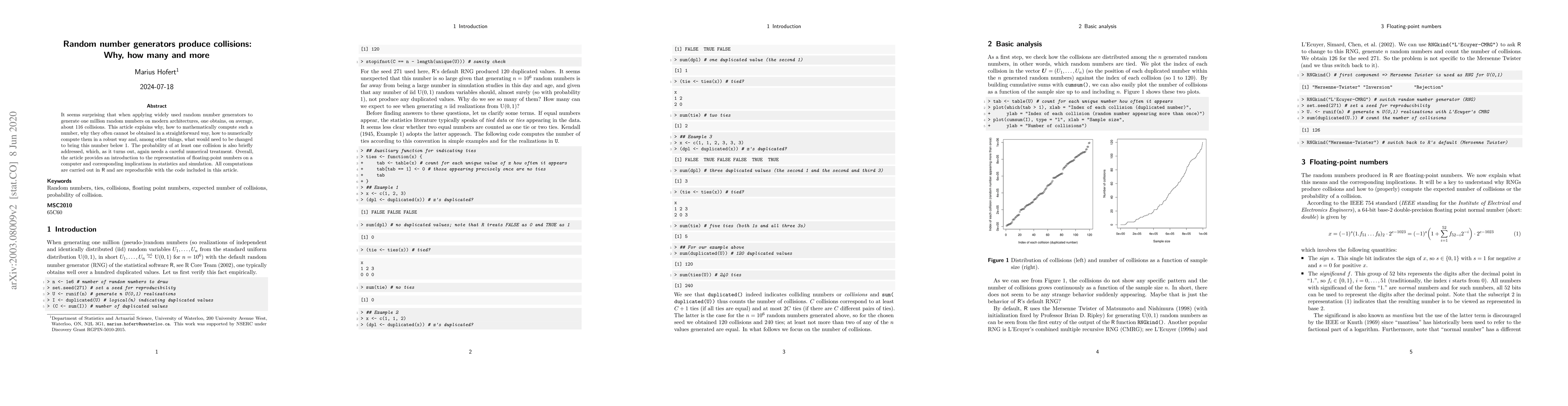 It seems surprising that when applying widely used random number generators to generate one million random numbers on modern architectures, one obtains, on average, about 116 collisions. This article explains why, how to mathematically compute such a number, why they often cannot be obtained in a straightforward way, how to numerically compute them in a robust way and, among other things, what would need to be changed to bring this number below 1. The probability of at least one collision is also briefly addressed, which, as it turns out, again needs a careful numerical treatment. Overall, the article provides an introduction to the representation of floating-point numbers on a computer and corresponding implications in statistics and simulation. All computations are carried out in R and are reproducible with the code included in this article.