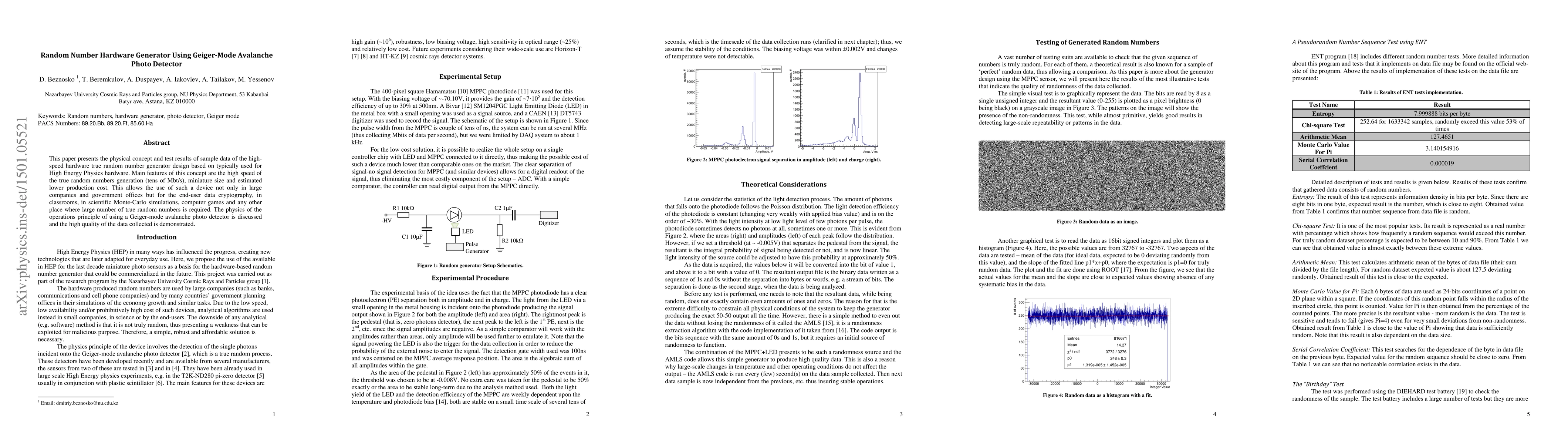 This paper introduces a high-speed, miniature true random number generator based on Geiger-mode avalanche photo detectors, showcasing its potential for widespread use in data cryptography, simulations, and gaming due to its high-quality random data and lower production costs. The physics behind the device's operation is thoroughly discussed.