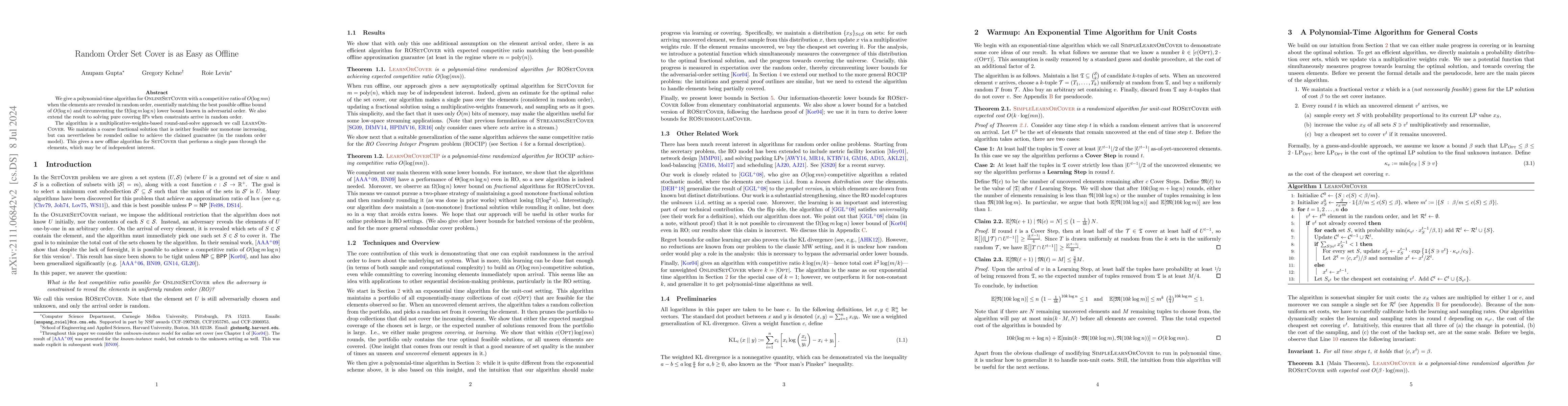 This research presents a polynomial-time algorithm for OnlineSetCover with a competitive ratio of O(log mn), nearly matching the optimal offline bound of O(log n) and bypassing previous adversarial order lower bounds. The method, LearnOrCover, uses a multiplicative-weights-based round-and-solve approach, also providing a novel single-pass offline algorithm for SetCover.