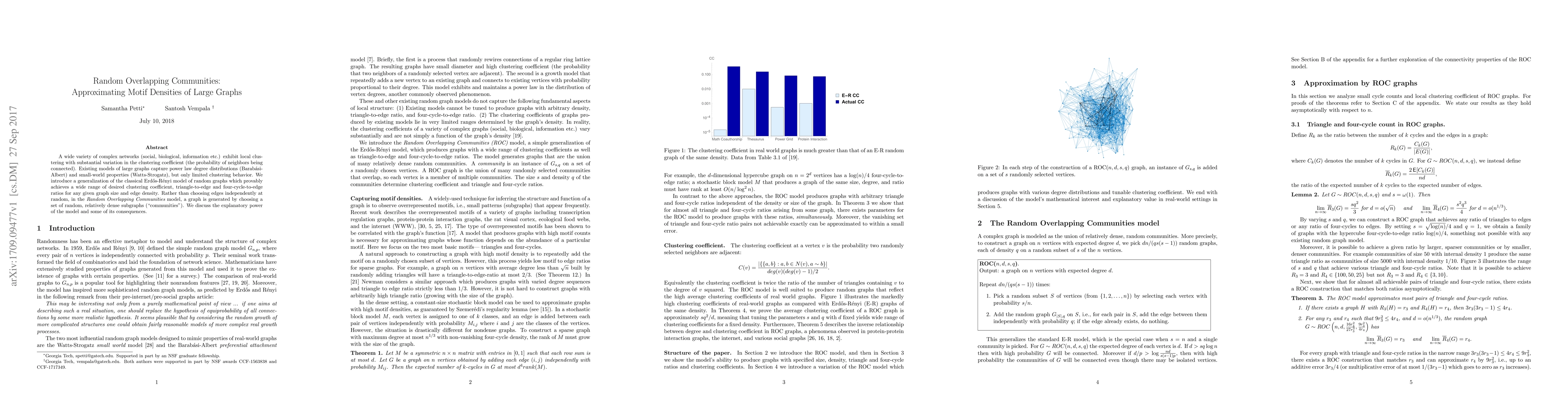 This paper introduces a Random Overlapping Communities model to generalize the Erdős-Rényi model, allowing for a wide range of clustering coefficients and motif densities in large graphs. The model generates graphs by selecting dense subgraphs, offering better explanatory power for complex networks with varying clustering behaviors.