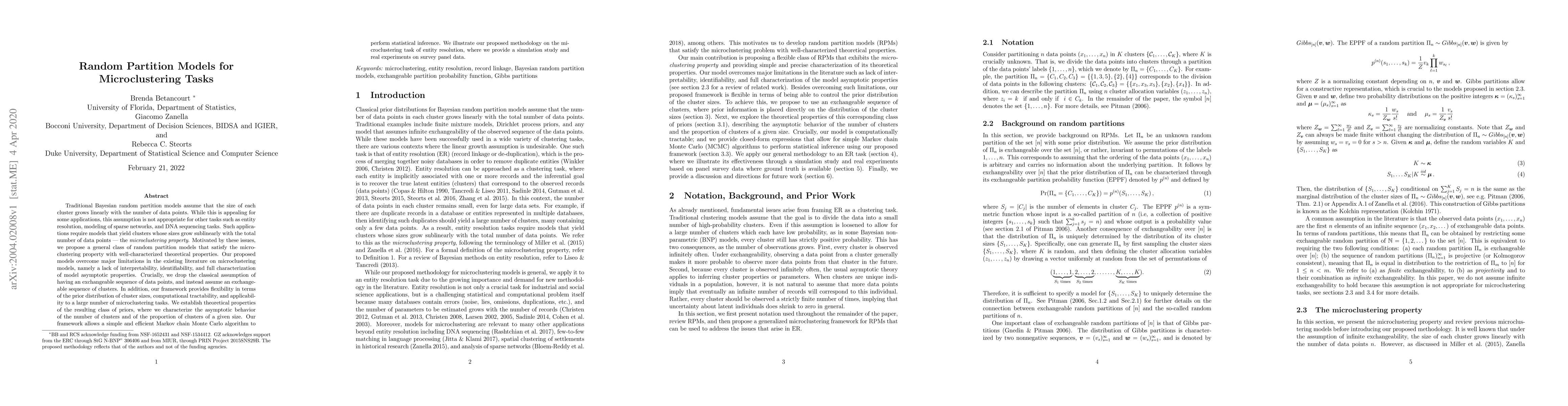 This paper proposes a new class of random partition models for microclustering tasks that allow cluster sizes to grow sublinearly with data points, addressing limitations in existing models. The proposed models offer interpretability, identifiability, and computational efficiency, and are demonstrated through entity resolution applications.