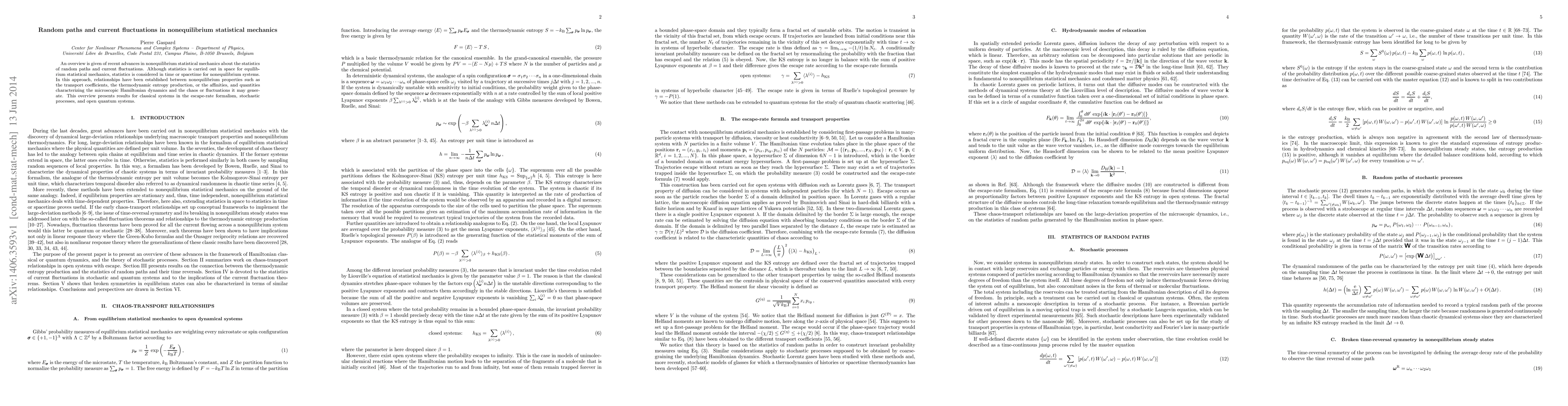 This paper reviews recent progress in nonequilibrium statistical mechanics focusing on random paths and current fluctuations. It establishes links between nonequilibrium properties and microscopic dynamics, covering classical systems, stochastic processes, and open quantum systems.