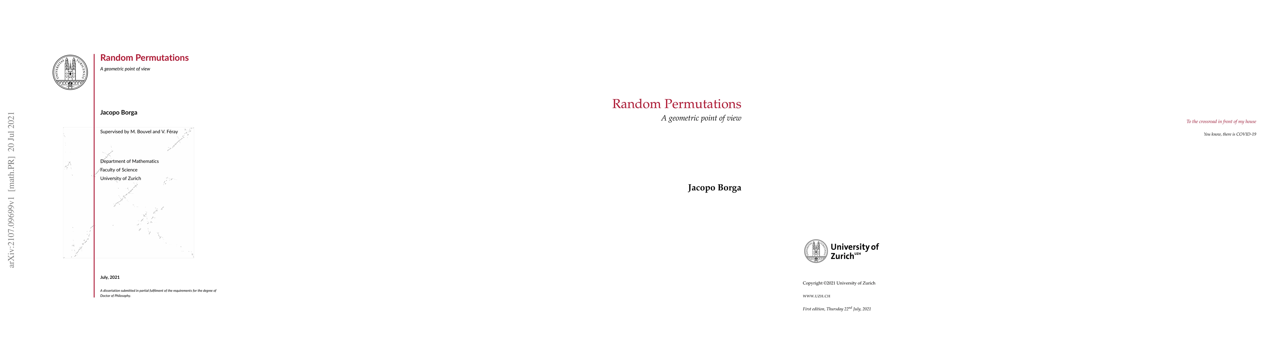 This paper explores geometric limits of large random non-uniform permutations, focusing on permuton and Benjamini-Schramm limits. It identifies constrained permutation models using pattern-avoidance and investigates universal phenomena, including a concentration phenomenon and phase transitions. It also introduces new permutons and establishes combinatorial results, including a description of feasible regions for consecutive patterns and new bijections relating Baxter permutations to other structures.