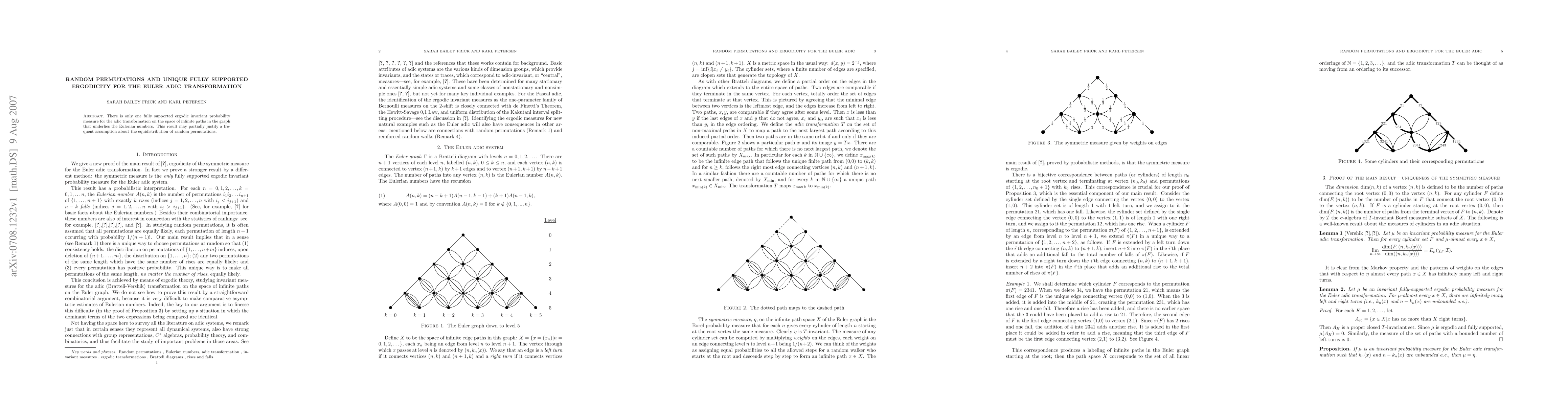 Summary: The paper demonstrates that the Euler adic transformation on infinite paths in the graph associated with Eulerian numbers has a unique fully supported ergodic invariant probability measure, supporting the frequent assumption of equidistribution in random permutations.