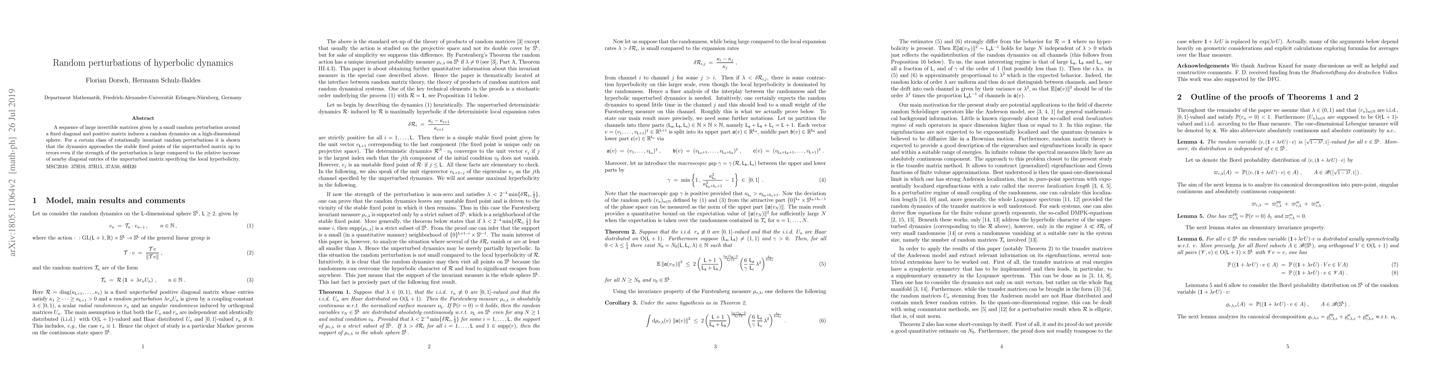 A sequence of large invertible matrices given by a small random perturbation around a fixed diagonal and positive matrix induces a random dynamics on a high-dimensional sphere. For a certain class of rotationally invariant random perturbations it is shown that the dynamics approaches the stable fixed points of the unperturbed matrix up to errors even if the strength of the perturbation is large compared to the relative increase of nearby diagonal entries of the unperturbed matrix specifying the local hyperbolicity.