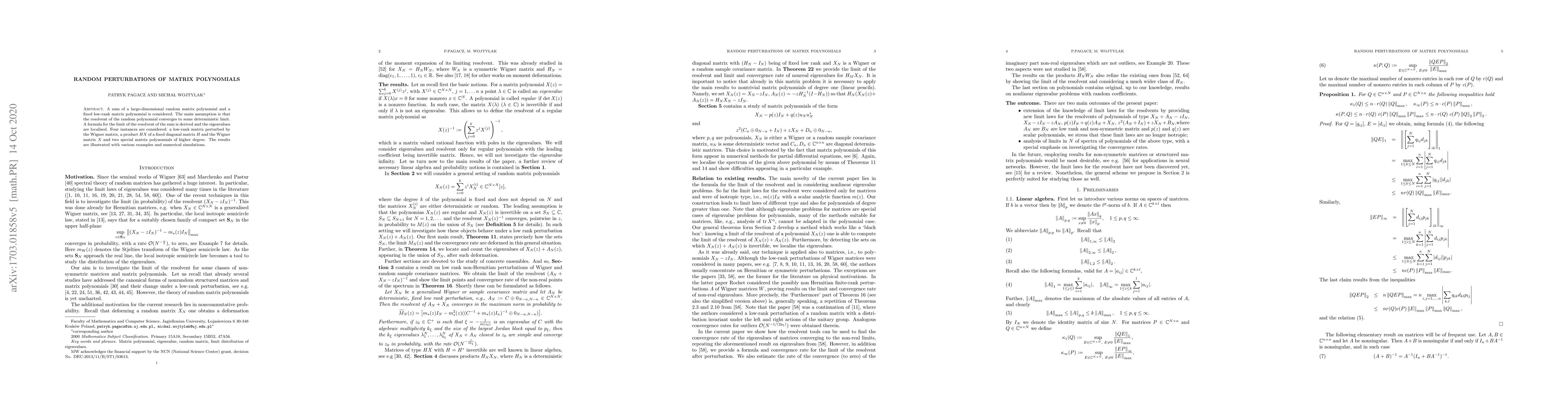 Researchers derive a formula for the limit of the resolvent of a sum between a large-dimensional random matrix polynomial and a fixed low-rank matrix polynomial, leading to localized eigenvalues.