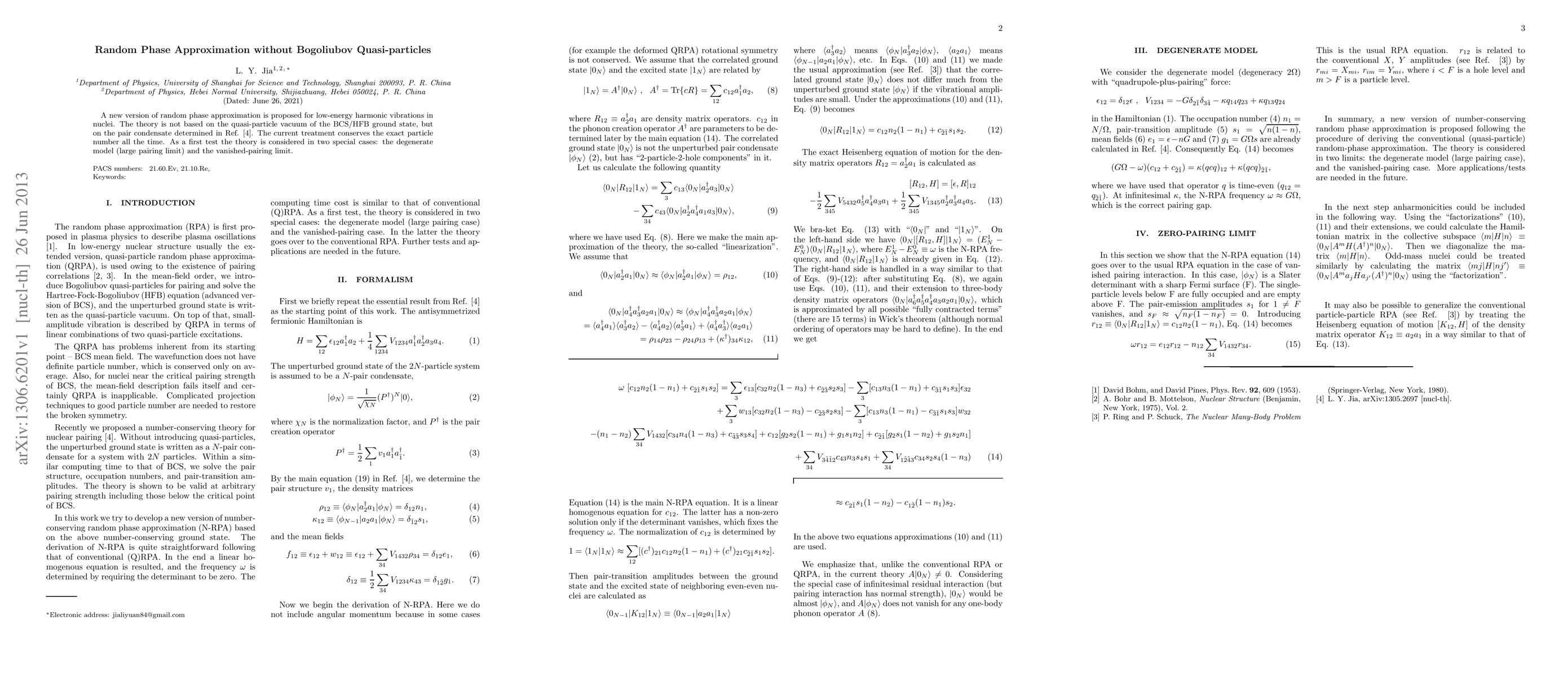 A new version of random phase approximation is proposed for low-energy harmonic vibrations in nuclei. The theory is not based on the quasi-particle vacuum of the BCS/HFB ground state, but on the pair condensate determined in Ref. [4]. The current treatment conserves the exact particle number all the time. As a first test the theory is considered in two special cases: the degenerate model (large pairing limit) and the vanished-pairing limit.