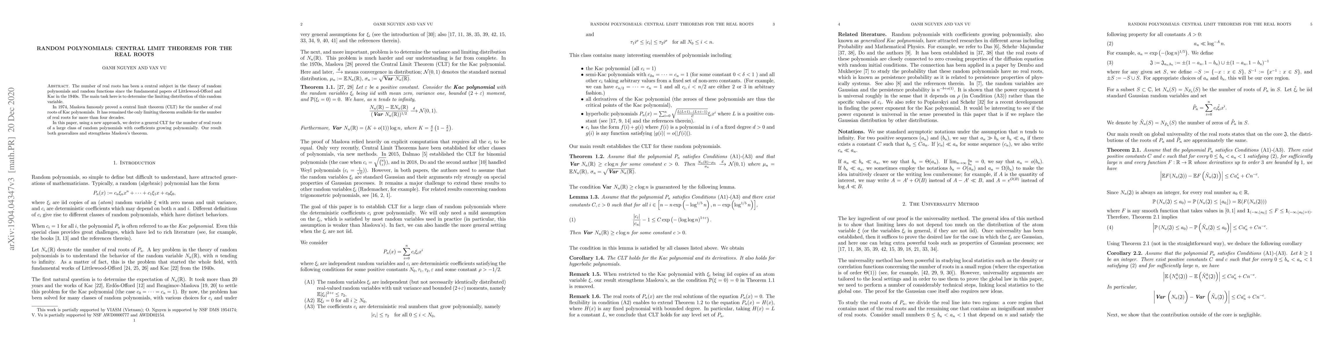 The number of real roots has been a central subject in the theory of random polynomials and random functions since the fundamental papers of Littlewood-Offord and Kac in the 1940s. The main task here is to determine the limiting distribution of this random variable. In 1974, Maslova famously proved a central limit theorem (CLT) for the number of real roots of Kac polynomials. It has remained the only limiting theorem available for the number of real roots for more than four decades. In this paper, using a new approach, we derive a general CLT for the number of real roots of a large class of random polynomials with coefficients growing polynomially. Our result both generalizes and strengthens Maslova's theorem.